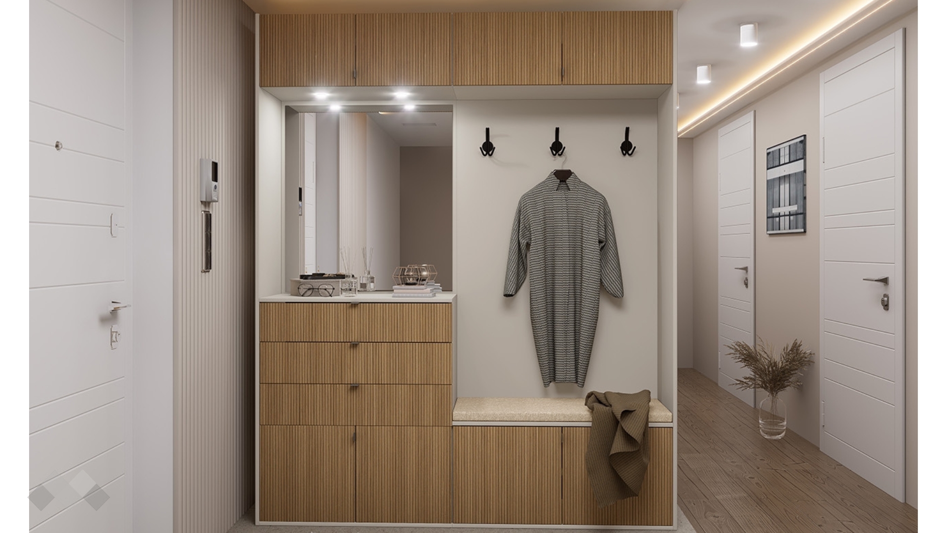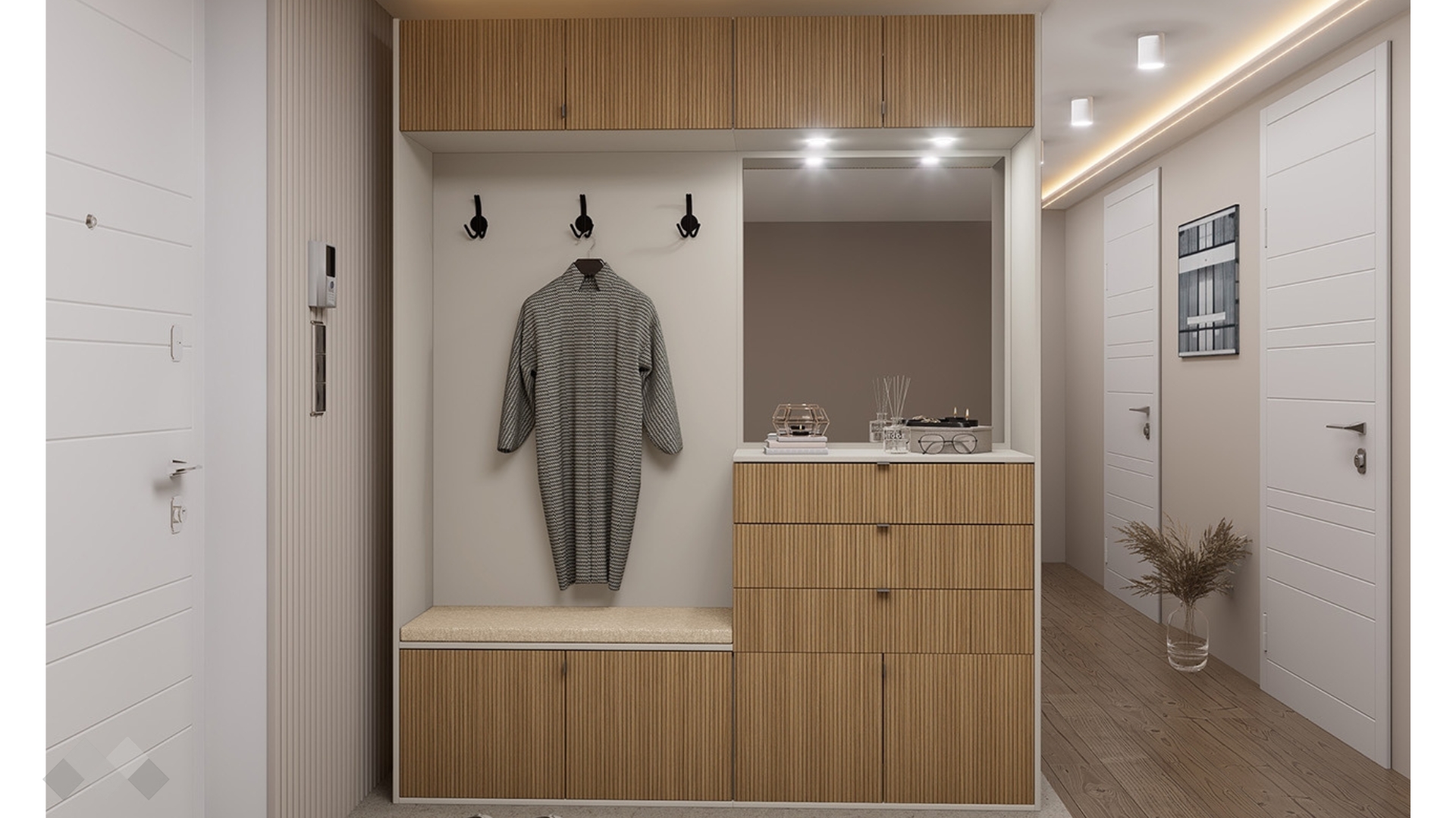 Портманто Хармония е стилно и функционално решение за твоето антре, което съчетава модерен дизайн и отлично организирано пространство за съхранение. То ще ти помогне да поддържаш ред още от входа на дома, като осигурява удобно място за връхни дрехи, обувки и аксесоари.