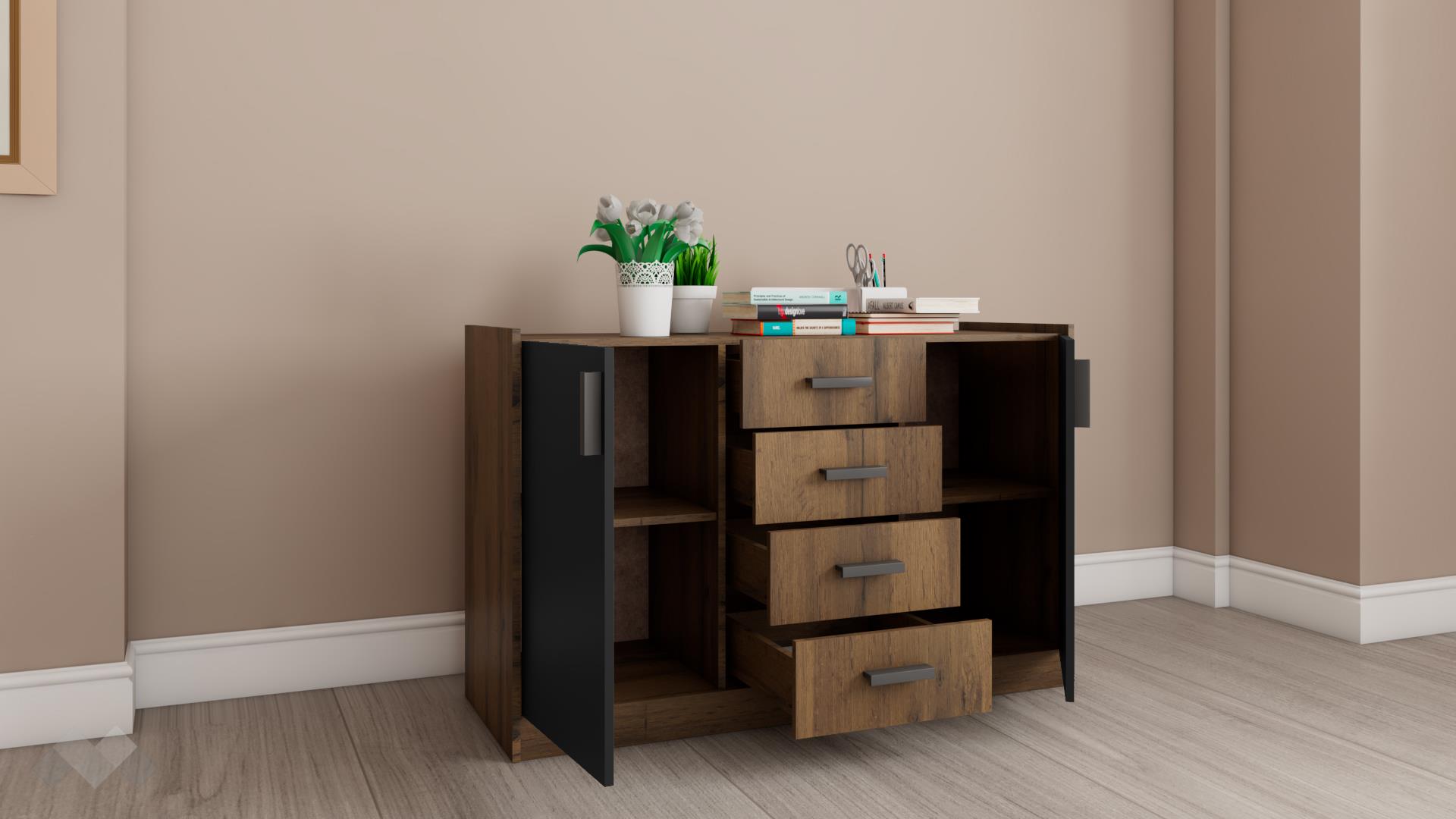 Практичен скрин, който можеш да разположиш във всяко помещение в жилището си. Благодарение на четирите чекмеджета и двата затворени шкафа с по един рафт, разполагаш с достатъчно място за организация на всякакви вещи и дреболии.