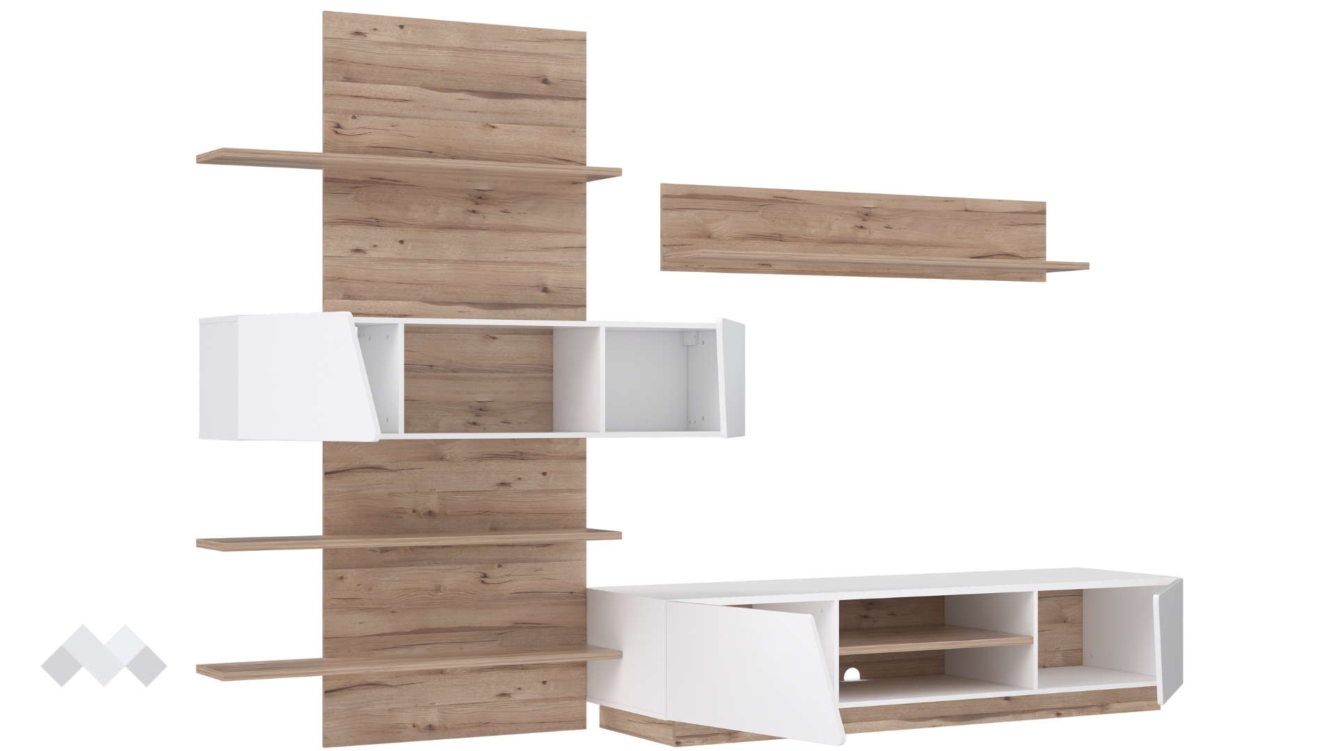 ⭐ Предимства: ✓ отворени рафтове ✓ шкафове ✓ етажерка ✓ място за телевизор ✓ стилен дизайн ✓ практична изработка