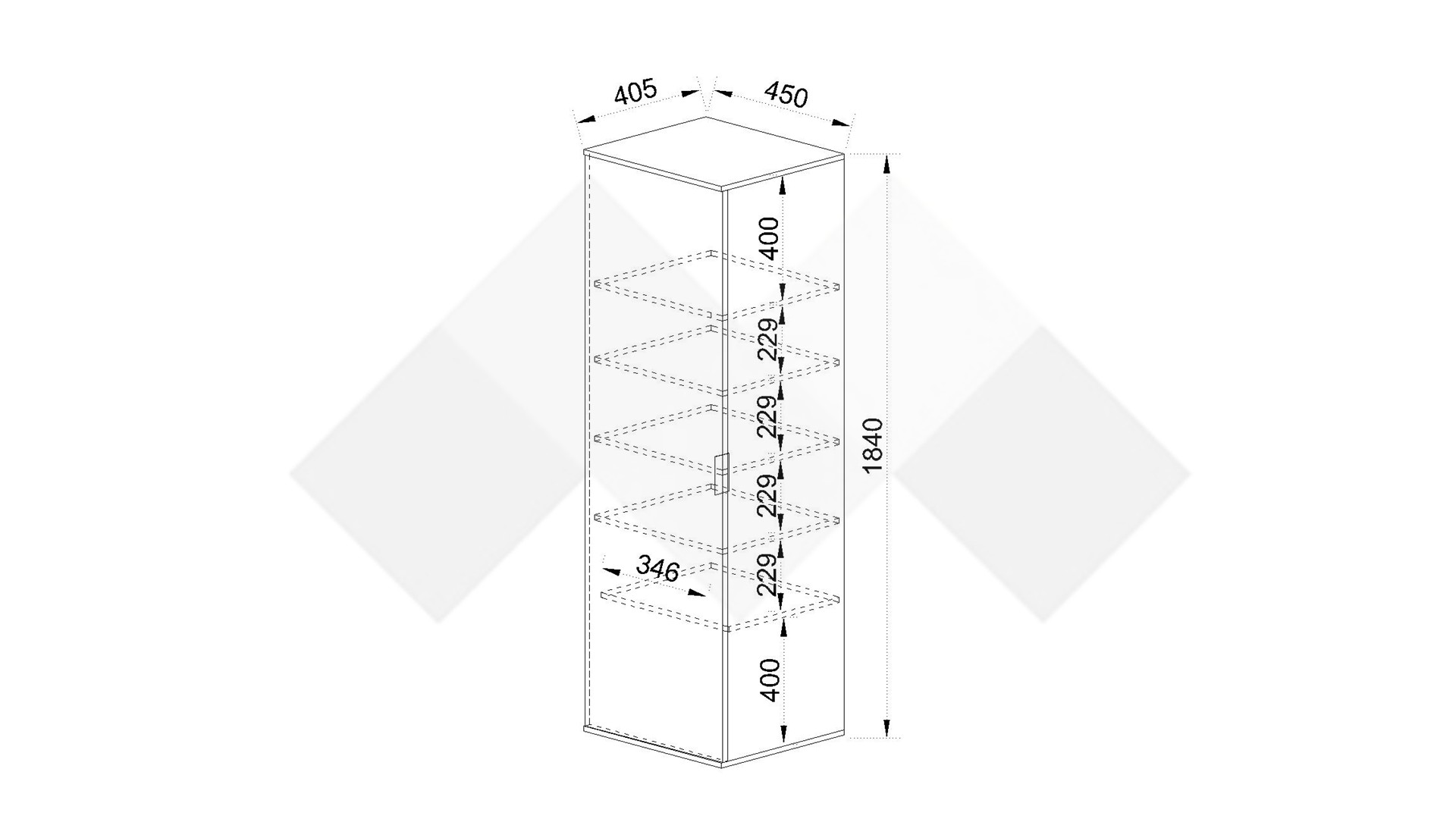 Д: 45 см Ш: 40,5 см В: 184 см