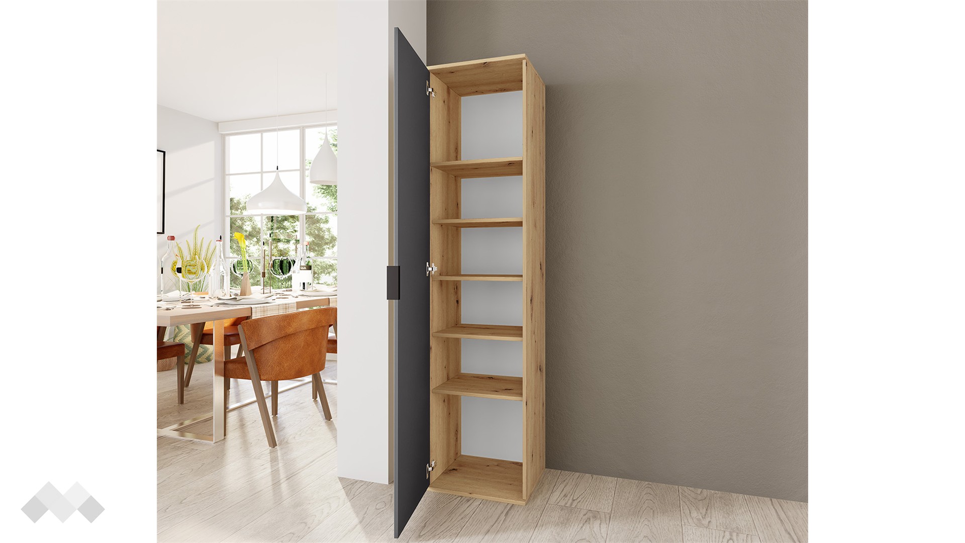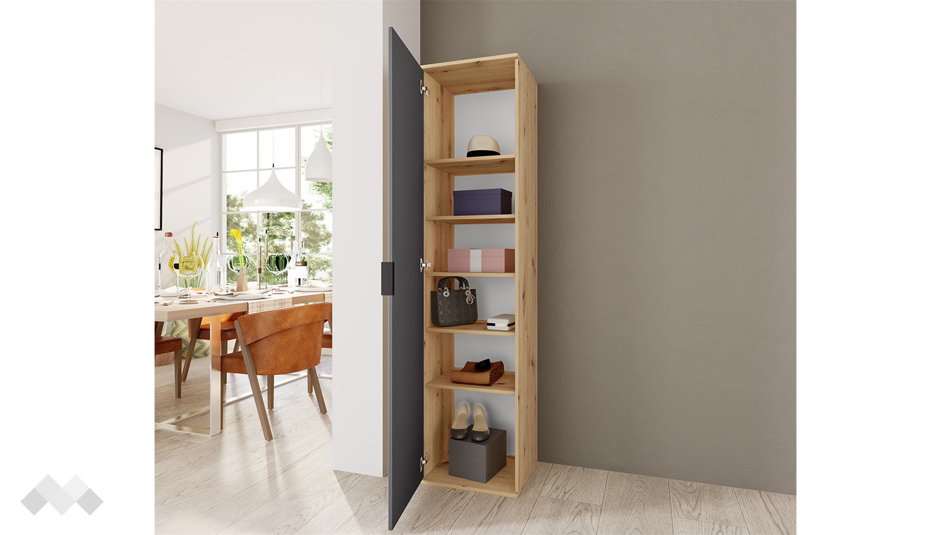 ✓ еднокрилен ✓ 5 рафта ✓ модерен декор ✓ практично разпределение ✓ механизъм за плавно затваряне ✓ качествена изработка