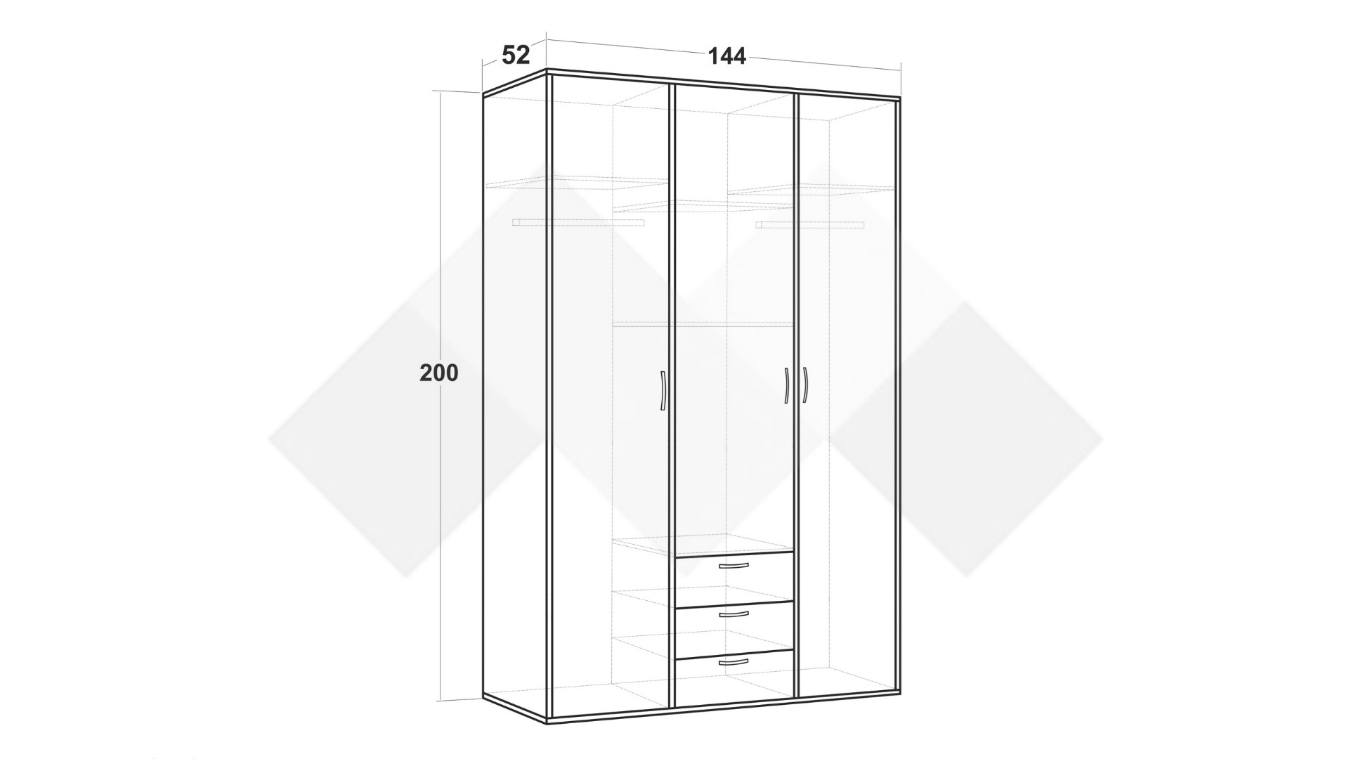 Д: 144 см Ш: 52 см В: 200 см