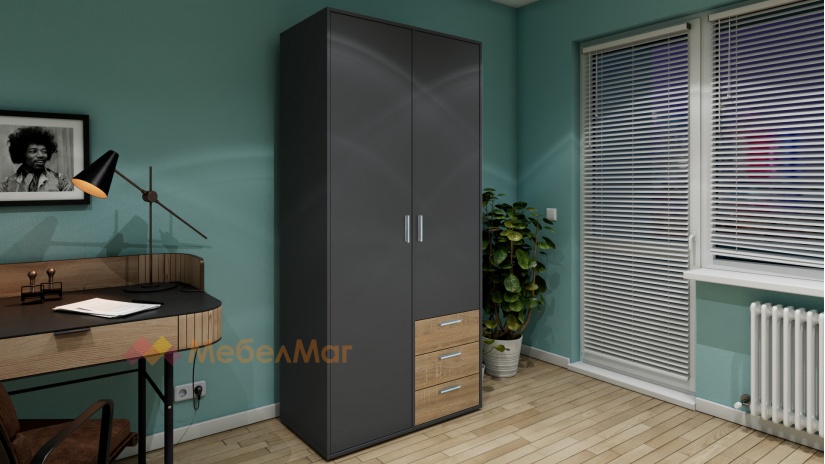 ГардеробЖизелантрацит с дъб сонома двукрилни