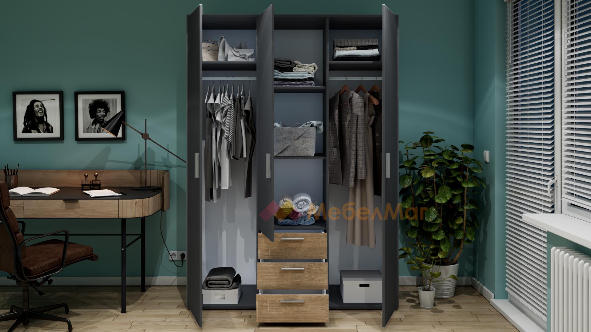 ГардеробЖизелантрацит с дъб сонома трикрилни
