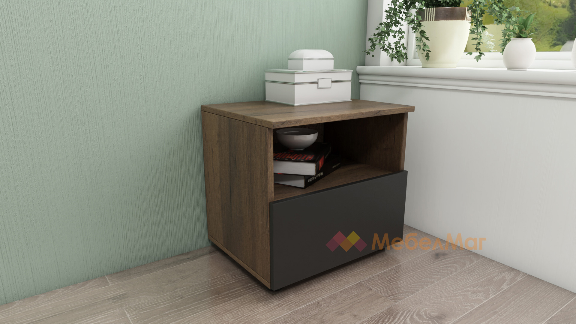 До спалнята за матрак с размер 140/200, може да поставиш двете нощни шкафчета, достатъчно обемни, за да съберат най-необходимите ти вещи, а върху плотовете им може да поставиш ефектни нощни лампи.