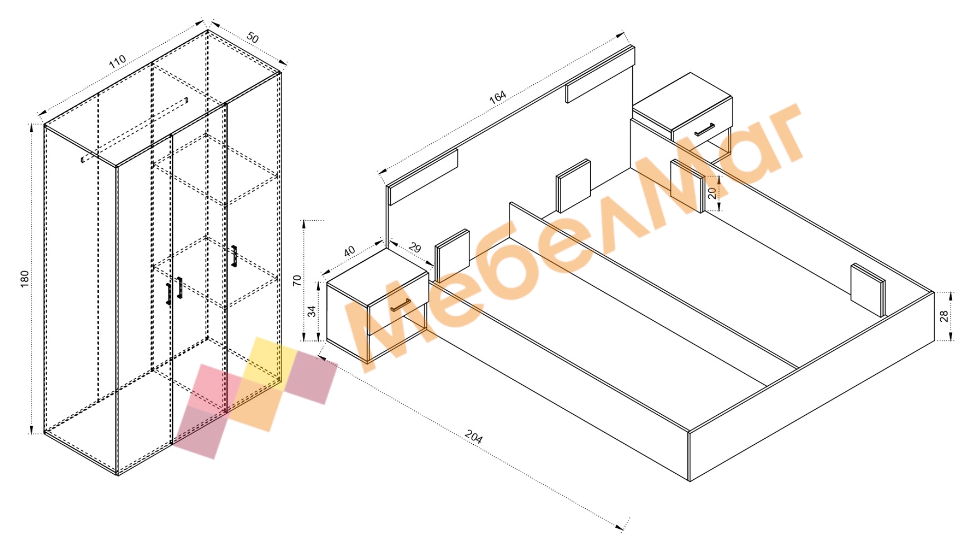 ✓ спалня ✓ две нощни шкафчета ✓ трикрилен гардероб ✓ модерен дизайн ✓ качествена изработка ✓ 15 мм ПДЧ