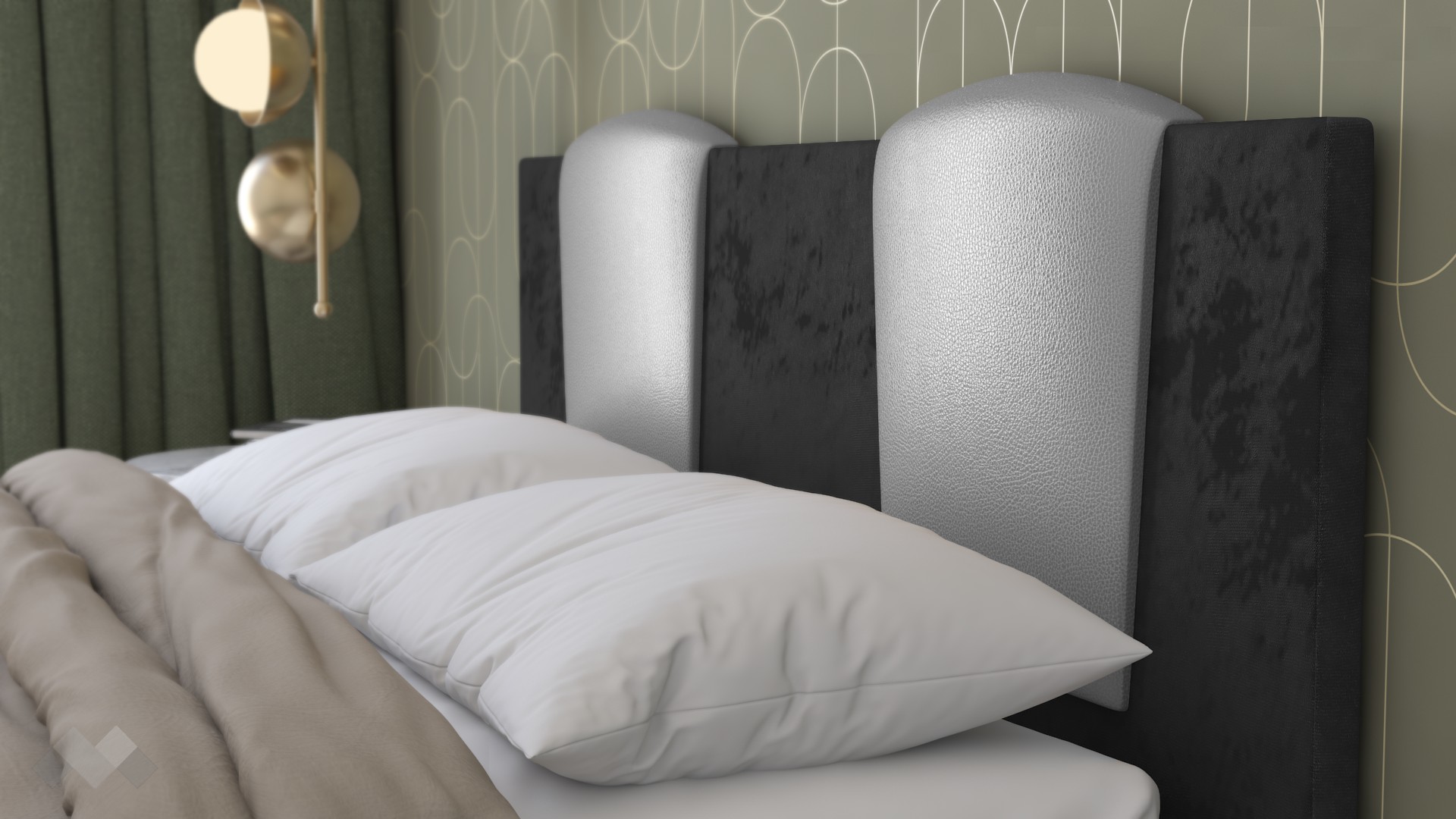 Тя е с идеалните размери – подходяща е за матрак с размер 160/200 см. Таблата и основата са тапицирани в приятна на допир дамаска, но еко кожата в сребрист цвят я превръща в истинско бижу. Това ти дава възможност да се облегнеш назад, когато гледаш телевизия или четеш книга, без да ти е необходима допълнителна възглавница.