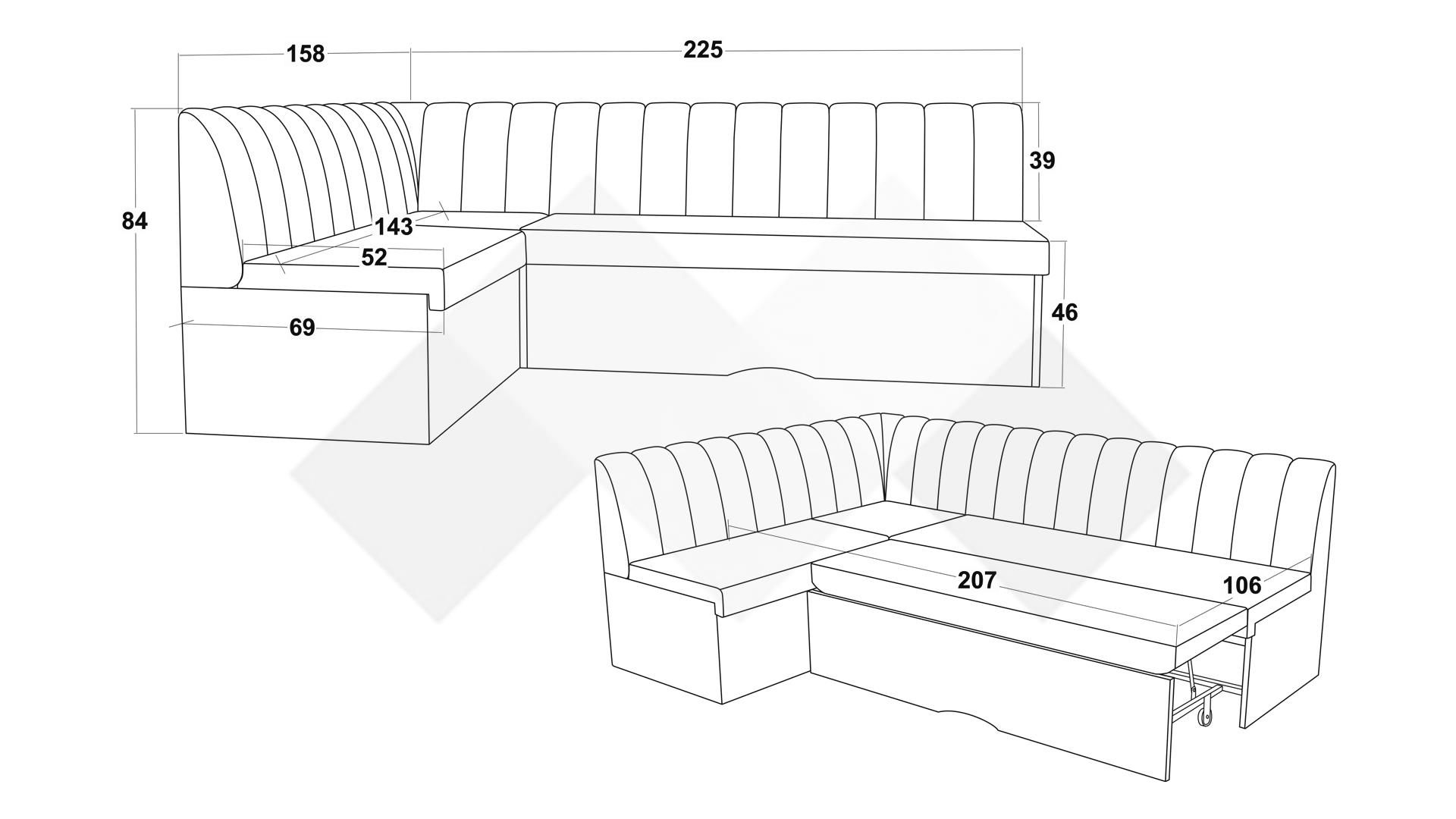 Ъгълът е проектиран за удобно ползване до трапезната маса вкъщи - средна мекота на седалната част и подходяща височина. Комфортът е гарантиран от меката облегална част.