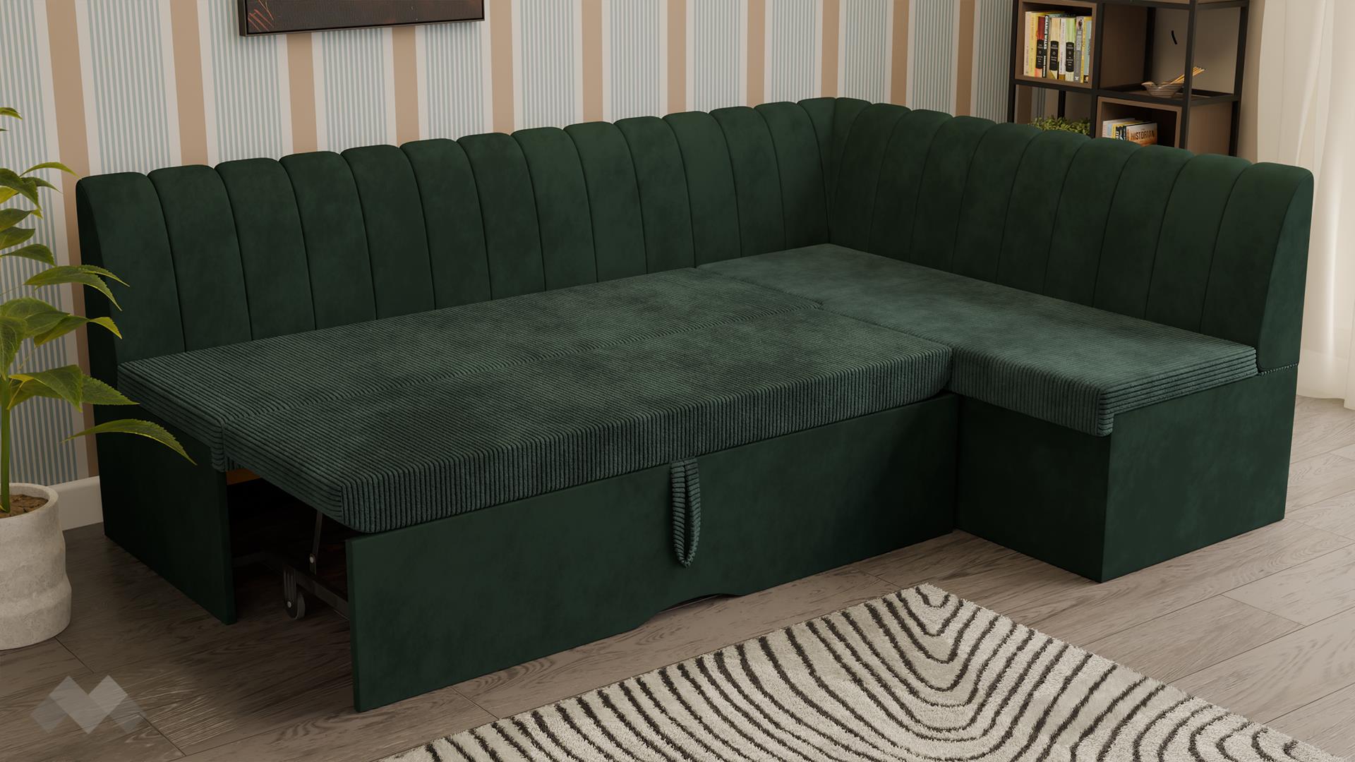 Ъгълът е проектиран за удобно ползване до трапезната маса вкъщи - средна мекота на седалната част и подходяща височина. Комфортът е гарантиран от меката облегална част.