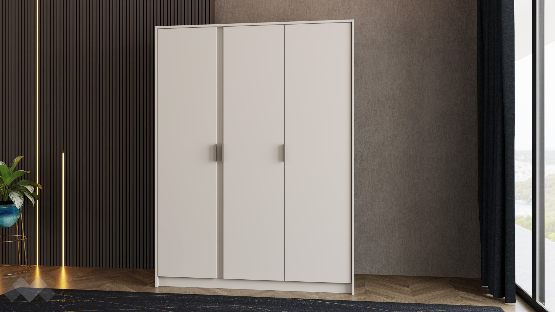 Трикрилният гардероб Кашмир е отлично решение за домове, в които организацията и удобството са на първо място. Благодарение на добре обмисленото вътрешно разпределение, той осигурява изобилие от пространство за всякакъв тип дрехи и аксесоари.