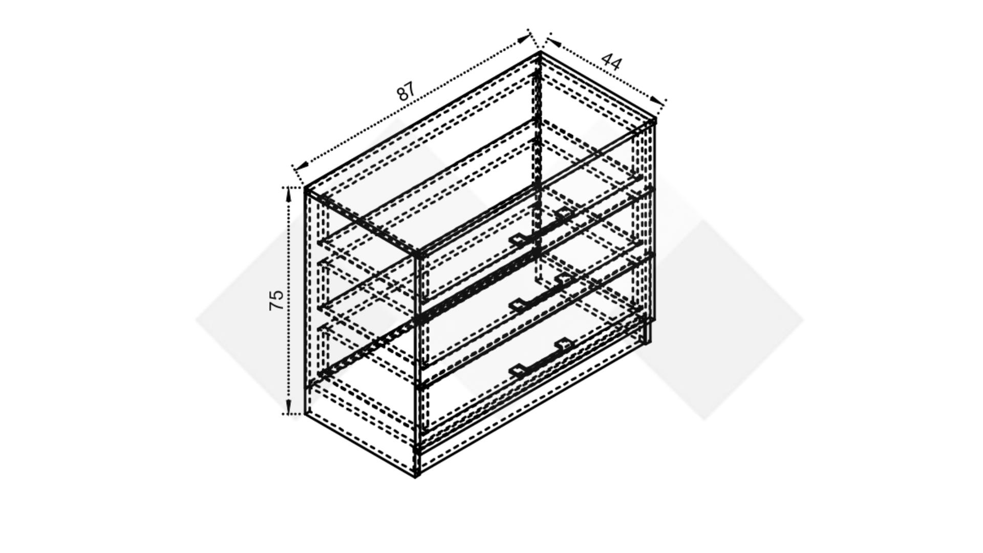 Благодарение на трите просторни чекмеджета, скринът ще ти осигури достатъчно място за съхранение на дрехи, бельо, аксесоари или други лични вещи. Чекмеджетата са снабдени с телескопични водачи, което прави изтеглянето им леко и стабилно, като издържат и при по-голямо натоварване. Върху скрина можеш да поставиш красива декорация, любима фотография на цялото семейство или сувенир, за да създадеш още по-уютна и хармонична обстановка у дома.