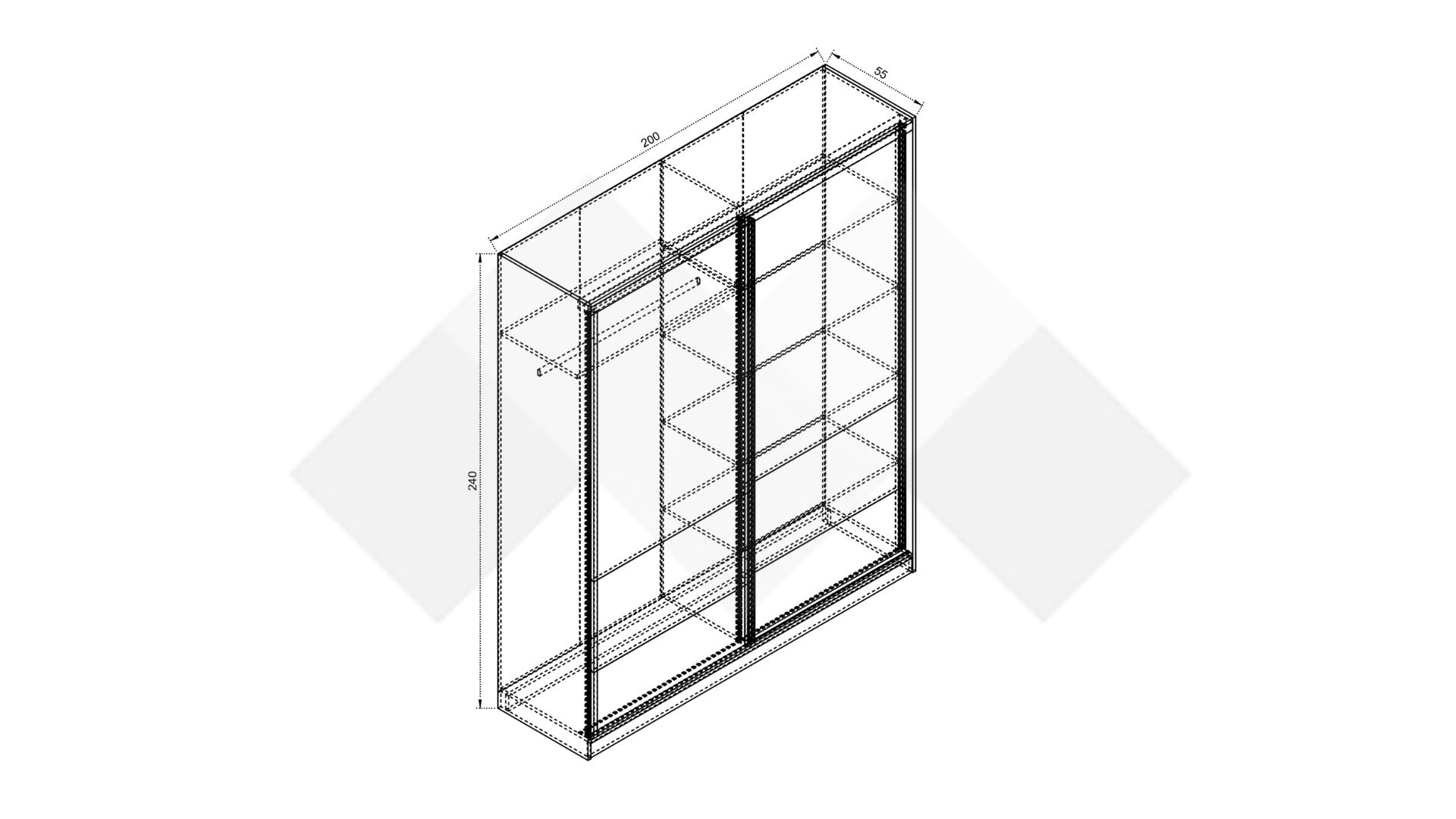 Гардеробът е с две крила, като вътрешното му пространство предлага чудесно разпределение и бърз достъп до всичките ти вещи. Щом отвориш вратите, ще откриеш достатъчно голям обем, който да побере не само дрехите ти, но и допълнителен багаж, удобно организирани на 5 рафта и лост за закачалки.
