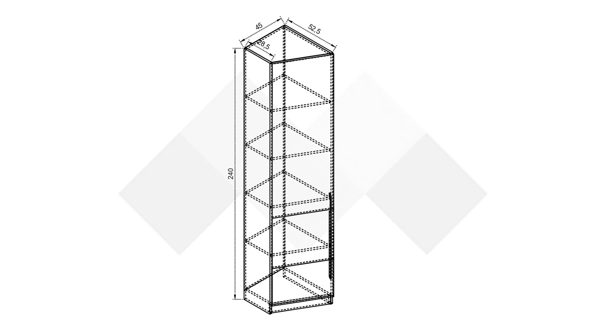 Д: 45 см Ш: 52.5-28.5 см В: 240 см
