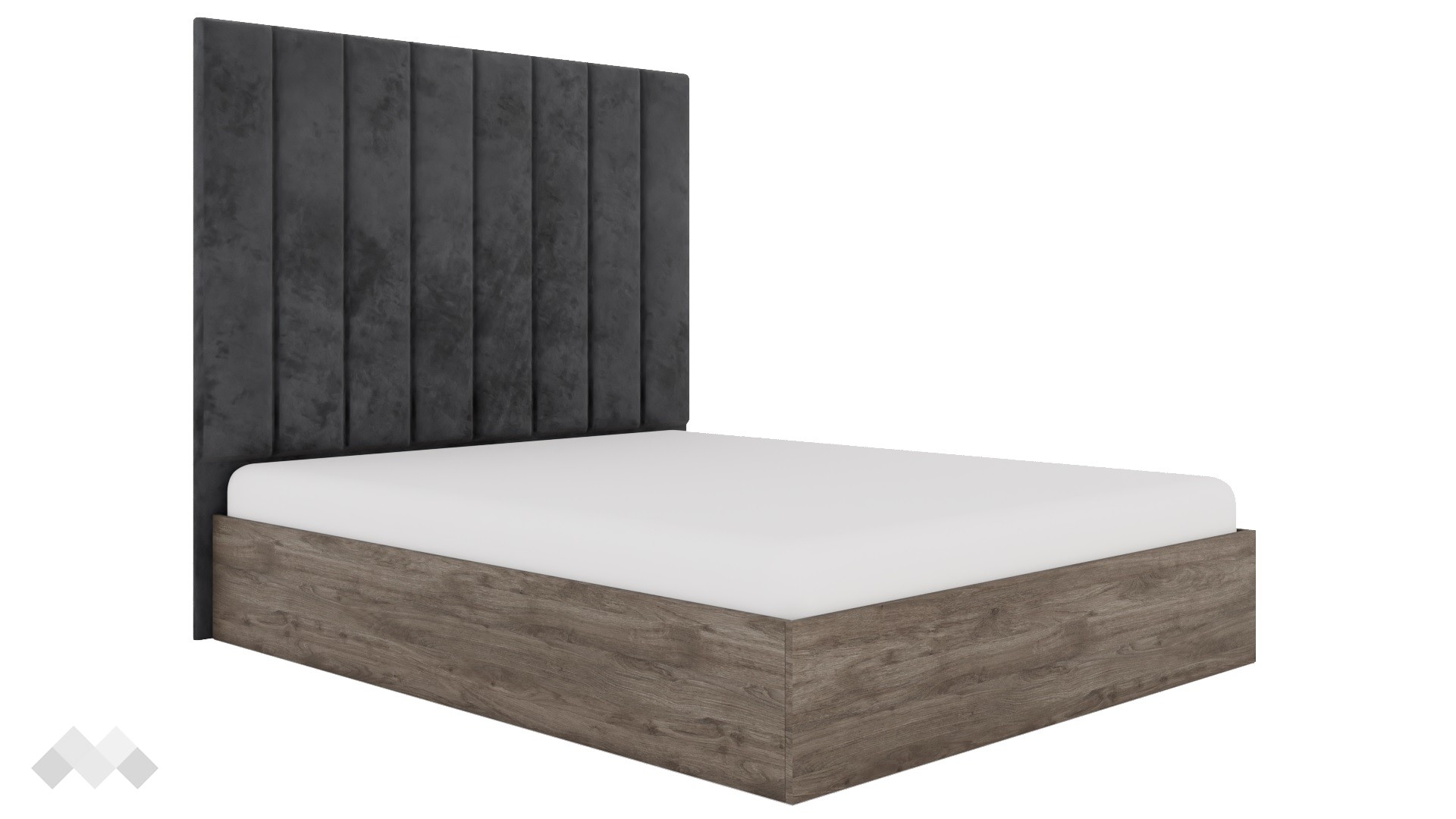 Спалнята ще ти осигури необходимото пространство за спокоен и комфортен сън. Тя е за матрак с размер 160/200 см. Високата, тапицирана табла на модела го превръща в перфектния избор за любителите на отдиха, защото ти позволява да се облегнеш комфортно и да се отдадеш на заслужена почивка по възможно най-удобния начин за теб. Таблата е с приятна и мека на допир сива дамаска. Любима книга или вечерното предаване - изборът е твой, единственото сигурно нещо е, че ще се чувстваш по-приятно от всякога.