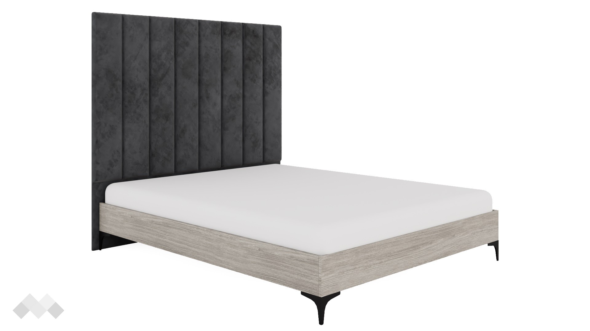 Спалнята ще ти осигури необходимото пространство за спокоен и комфортен сън. Тя е за матрак с размер 160/200 см. Високата, тапицирана табла на модела го превръща в перфектния избор за любителите на отдиха, защото ти позволява да се облегнеш комфортно и да се отдадеш на заслужена почивка по възможно най-удобния начин за теб. Таблата е с приятна и мека на допир сива дамаска. Любима книга или вечерното предаване - изборът е твой, единственото сигурно нещо е, че ще се чувстваш по-приятно от всякога.Също така спалнята е снабдена с метални крака, които не само поддържат стабилността на конструкцията, но също така придават на леглото съвременен и стилен вид.