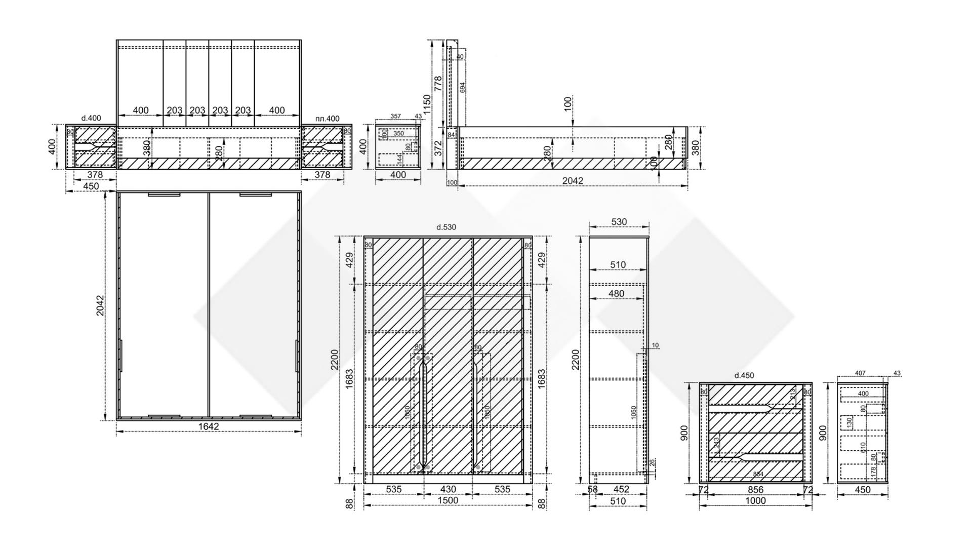 Гардероб: Д: 150 см Ш: 51 см В: 220 см