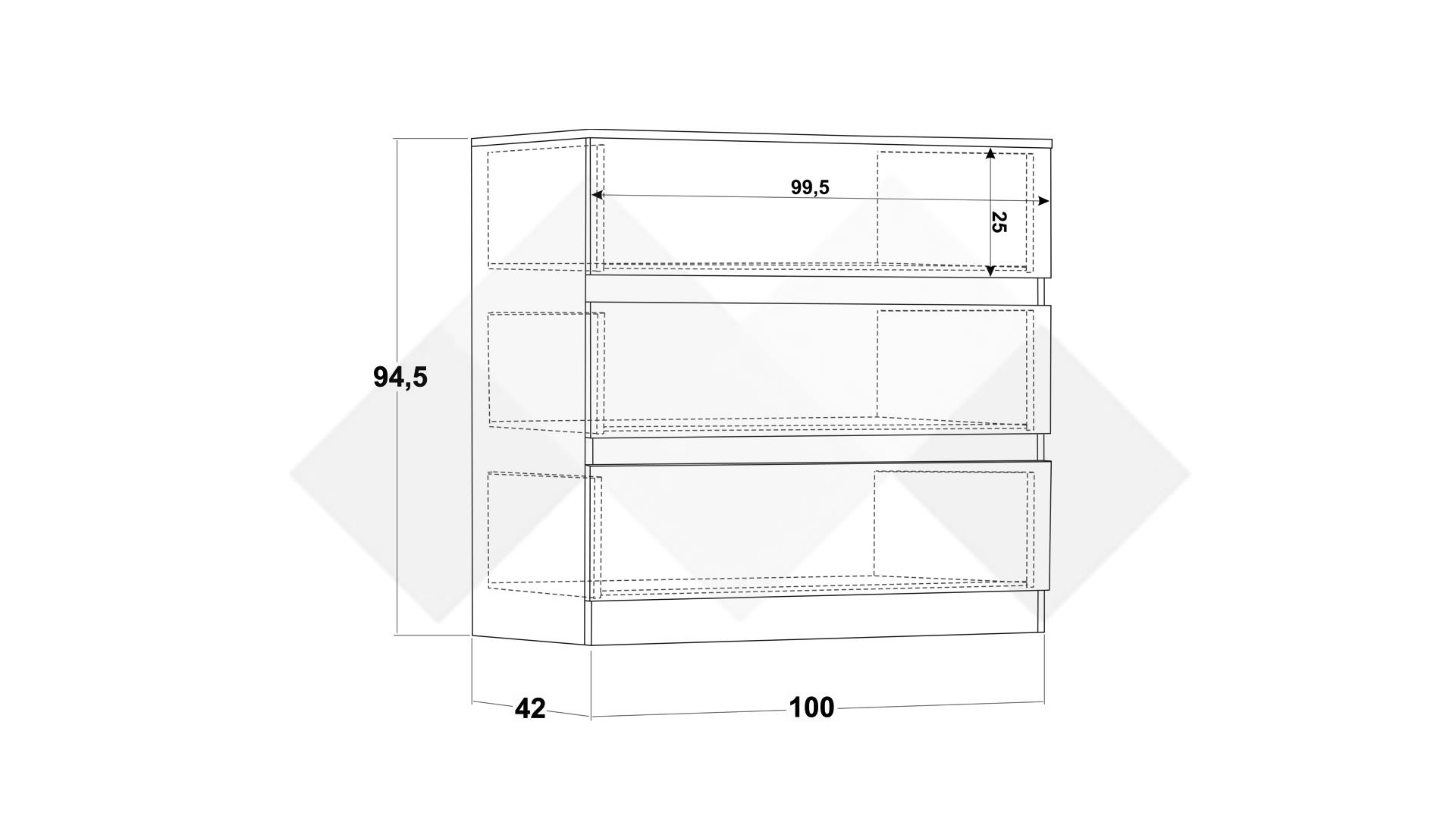 Със скрин Латте на твое разположение са три чекмеджета, подходящи за организиране на дрехи, бельо, малки ел. уреди, аксесоари или други необходими за теб неща.