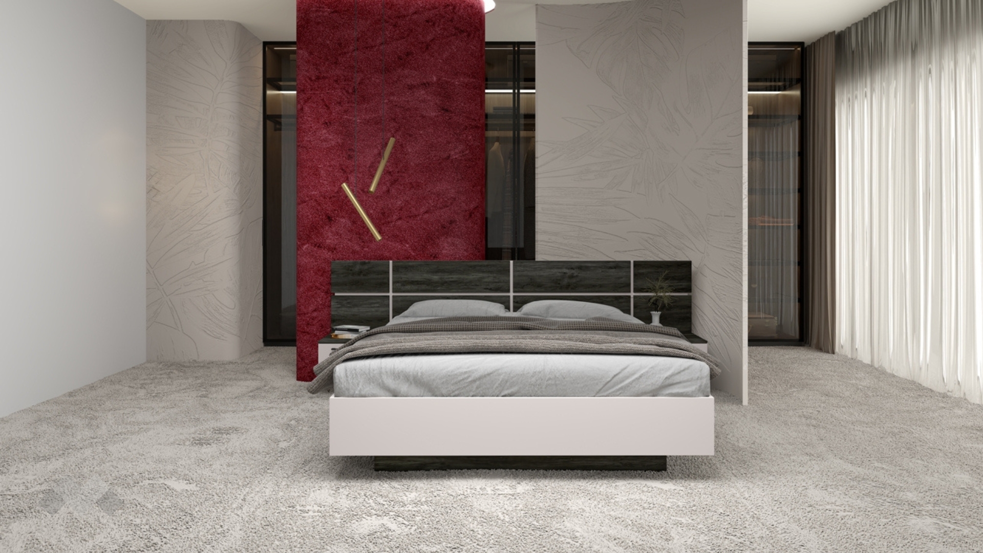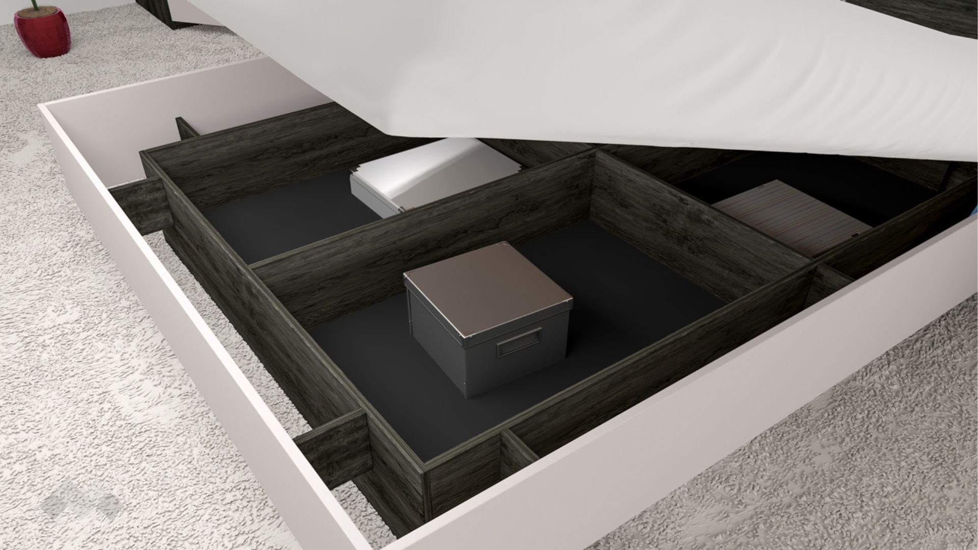 Тя е едновременно комфортна и функционална. Таблата е достатъчно висока и удобна за облягане при четене на книга или гледане на телевизия. Спалнята е подходяща за матрак с размери 160/200 см. Благодарение на включения механизъм за повдигане на матрака ще разполагаш с допълнително място за съхранение на вещите си.