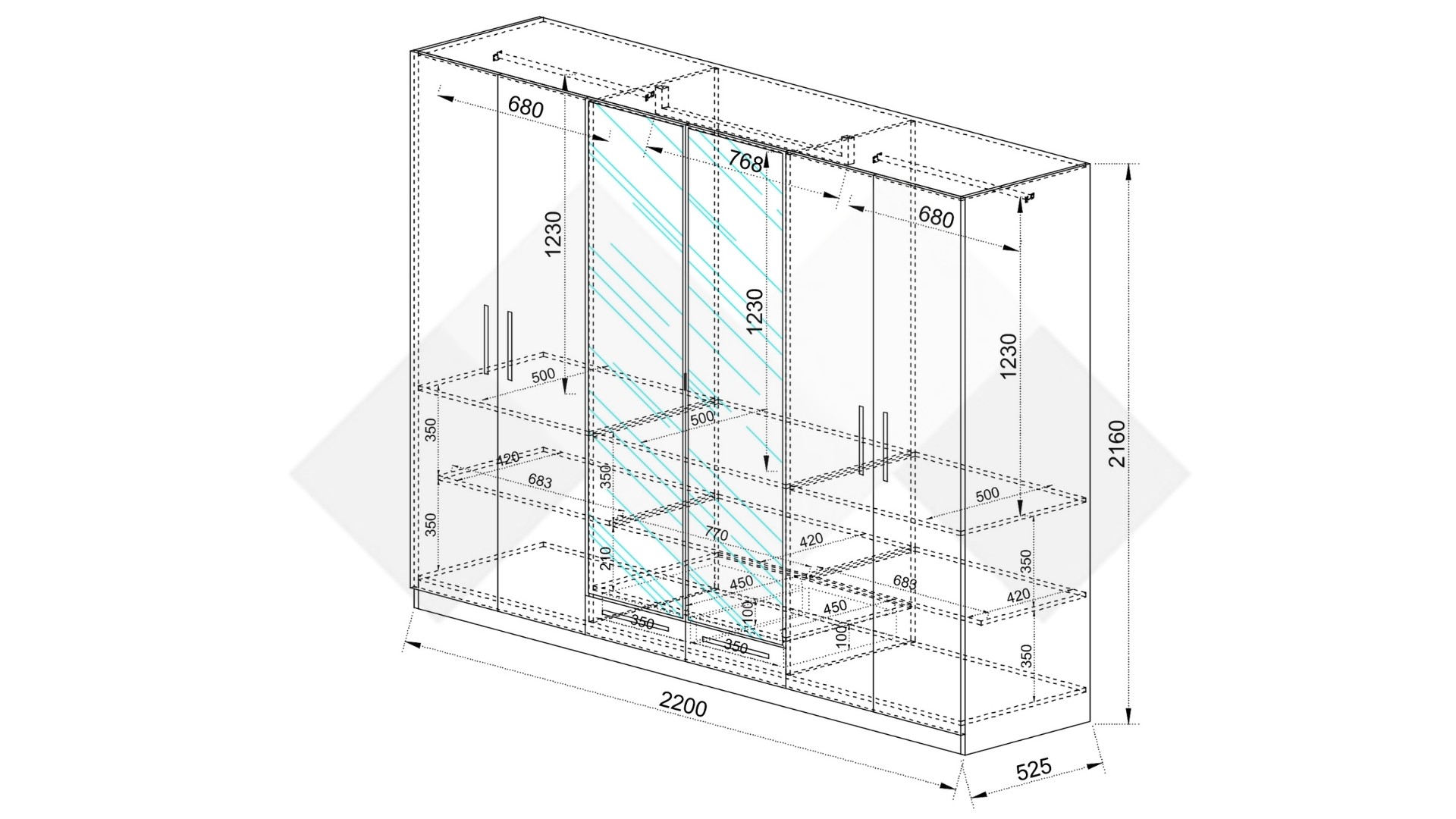 ✓ шесткрилен ✓ Алуглас врати ✓ 2 чекмеджета ✓ 6 рафта ✓ 2 лоста за закачалки ✓ 1 лед лост за закачалки ✓ механизъм за плавно затваряне ✓ практично разпределение ✓ модерен дизайн ✓ качествена изработка ✓ 16 мм ПДЧ