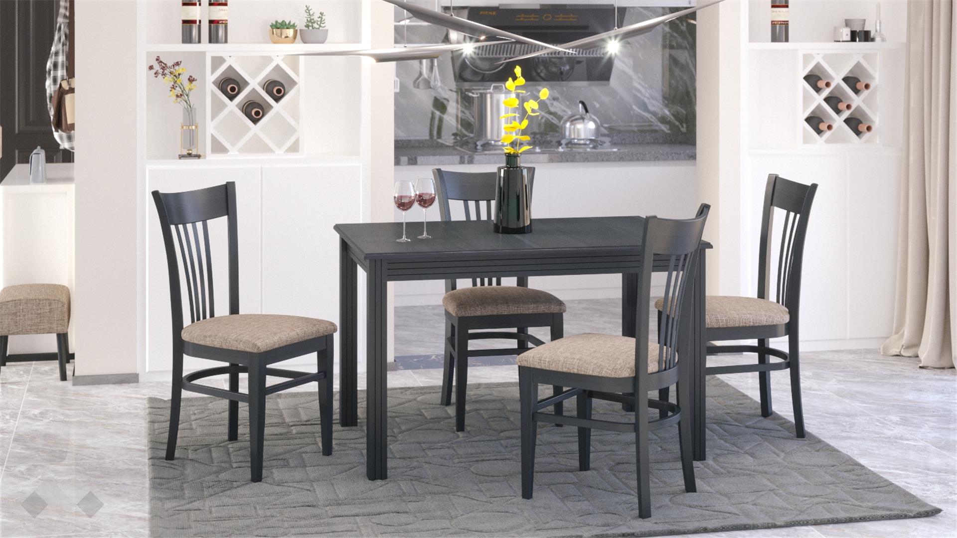 Столът е със здрава конструкция от естествена букова дървесина за устойчивост и стабилност, а лаковото покритие добавя елегантност. Седалката е проектирана с твърда основа, тапицирана с дунапрен за повече комфорт при седене и завършена със здрава текстилна дамаска, лесна за поддръжка.