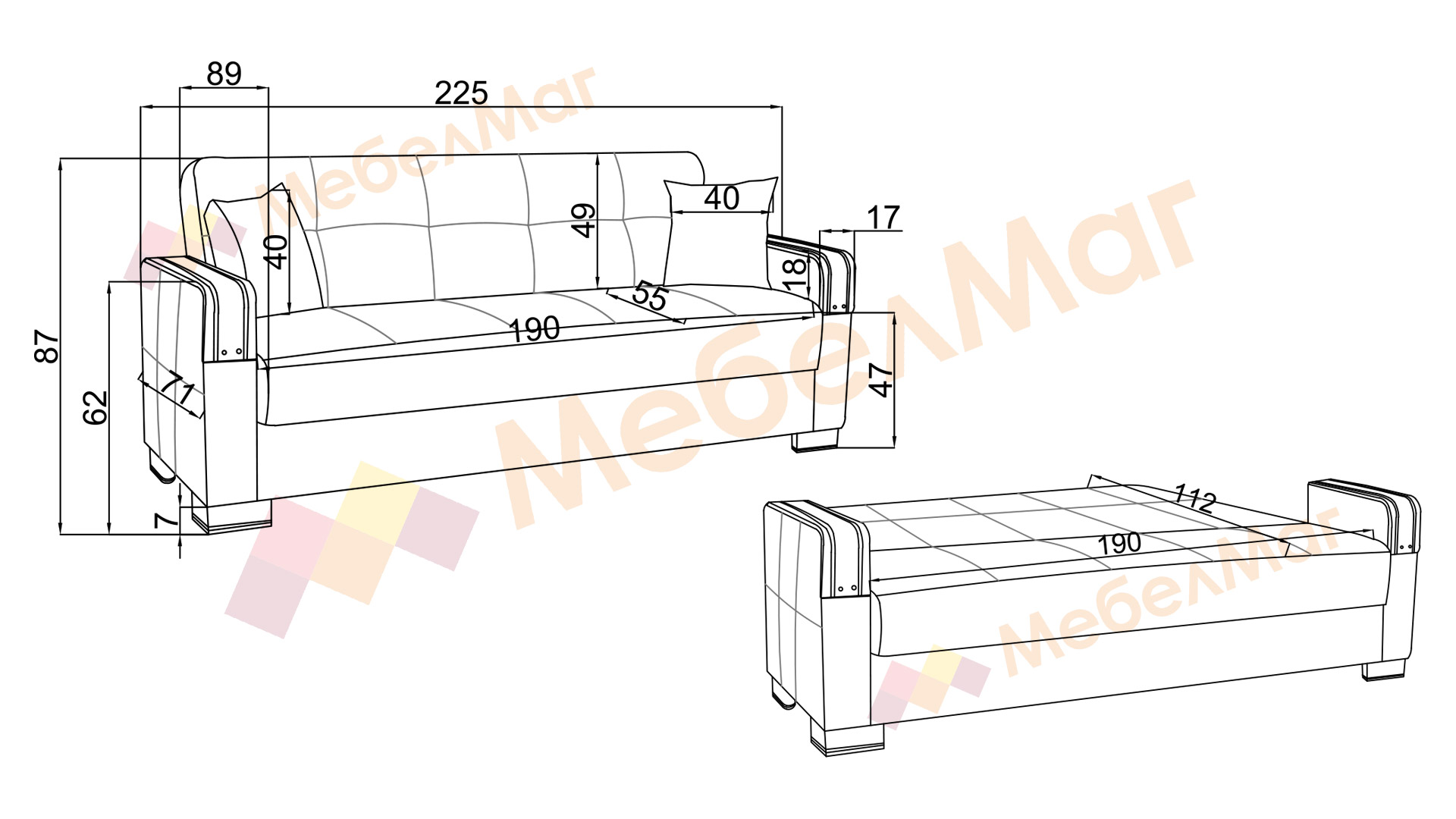Диванът има здрава конструкция с бонел пружина, отличаваща се с устойчивост за дълъг период на употреба.