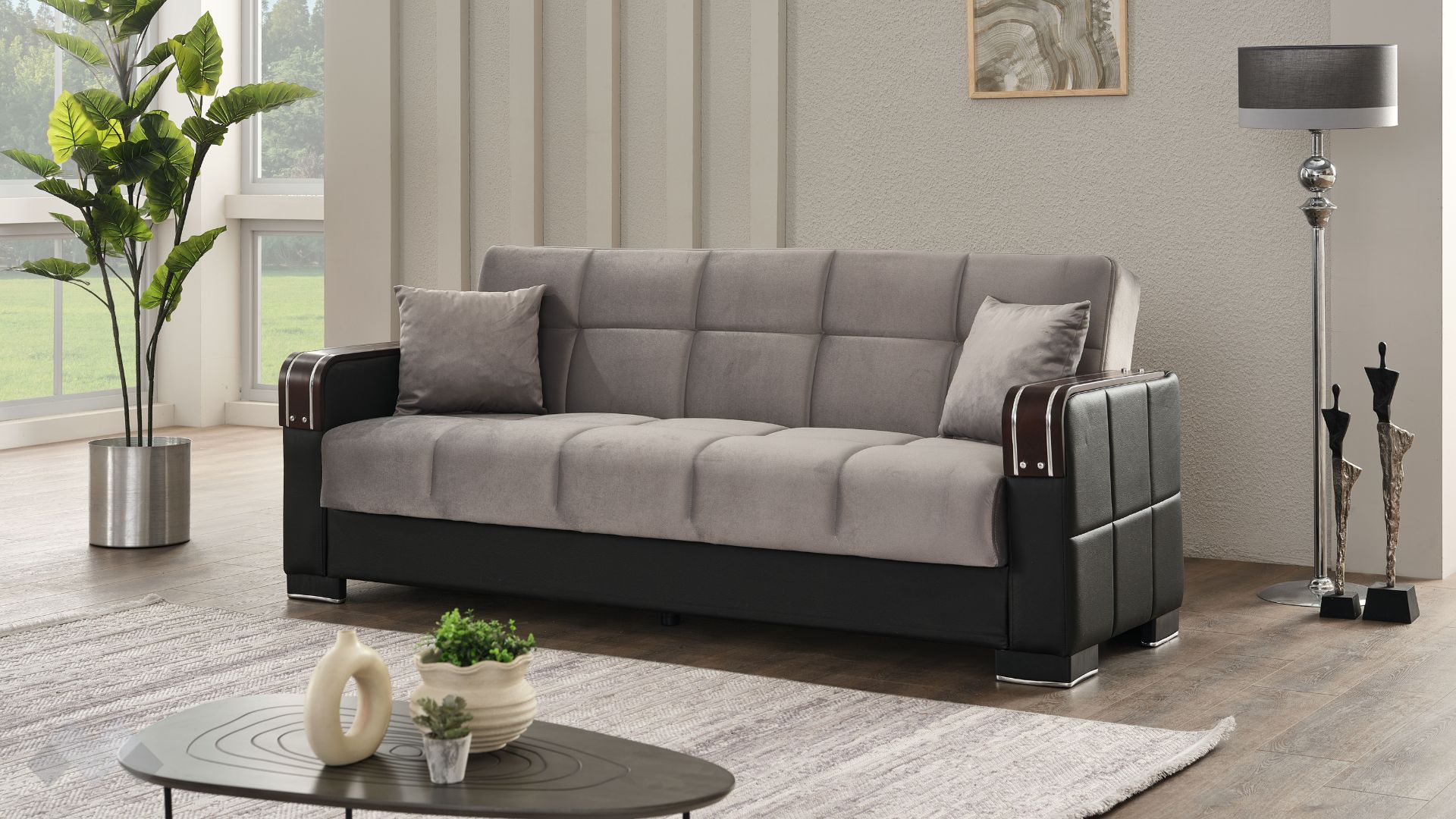 Диван Малатия впечатлява с елегантност, изчистени линии и стилна визия. Подлакътниците са декорирани с красив MDF детайл в цвят венге, който, в комбинация с декоративните шевове по дамаската и умело подбрания ѝ цвят, го превръща в истинско интериорно бижу.