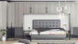Централният елемент на комплекта е леглото, което е проектирано за матрак 160/200 см. Разполага с елегантна тапицирана табла, която придава усещане за лукс и уют. Двете нощни шкафчета с чекмедже и отворен рафт осигуряват място за съхранение на най-необходимите вещи.