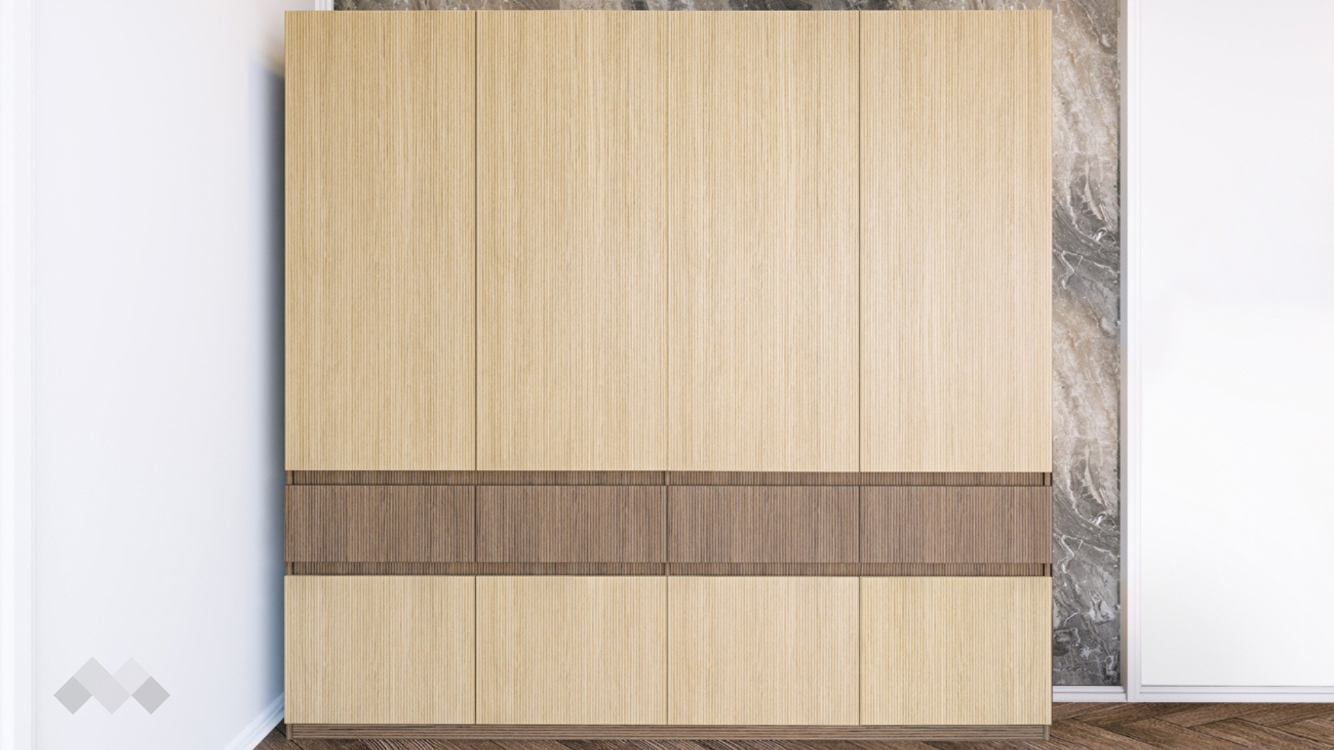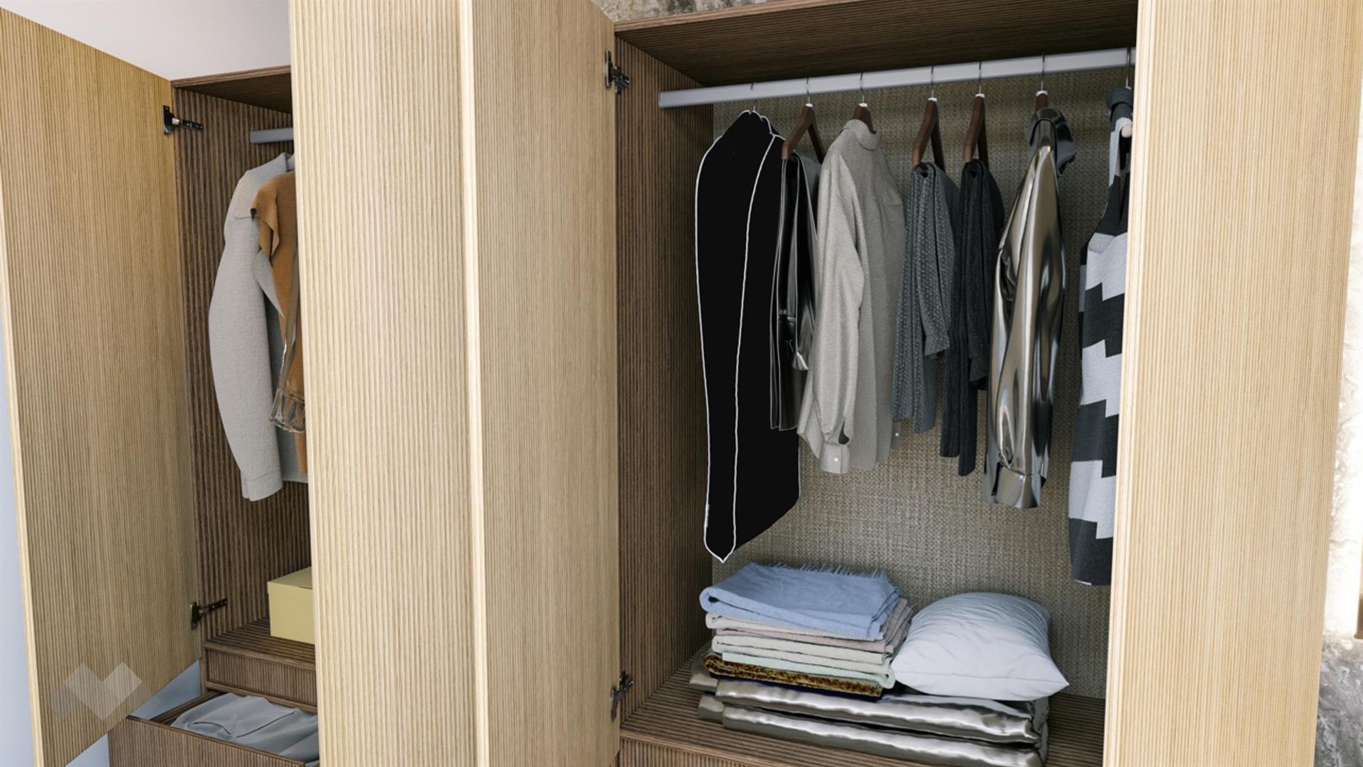 Благодарение на симетричното и практично разпределение, гардеробът е идеален избор за двойки – всеки ще разполага със своя страна, където може да подрежда вещите си удобно и подредено, отделно от тези на половинката си. Така всичко ще остава добре организирано и достъпно.