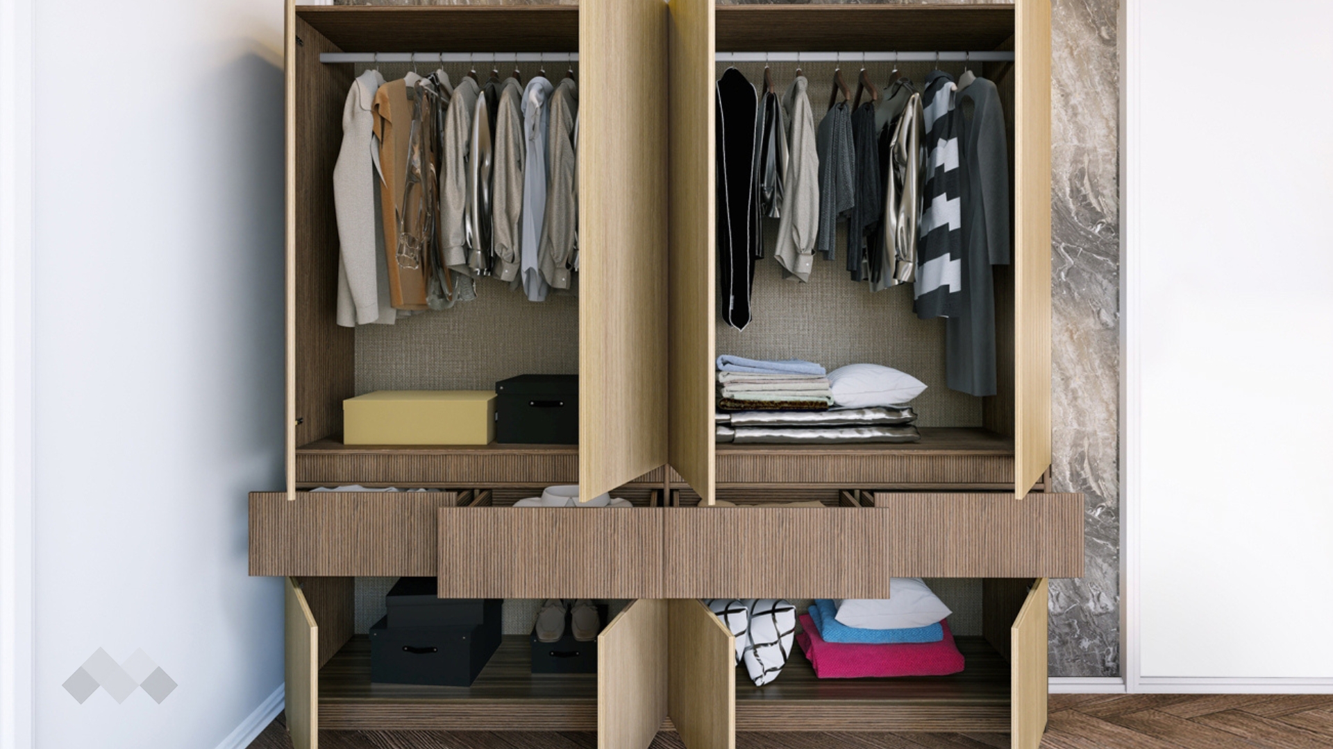 ✓ четирикрилен ✓ 4 чекмеджета ✓ 2 лоста за закачалки ✓ механизъм за плавно затваряне ✓ практично разпределение ✓ модерен дизайн ✓ качествена изработка ✓ 16 мм ПДЧ