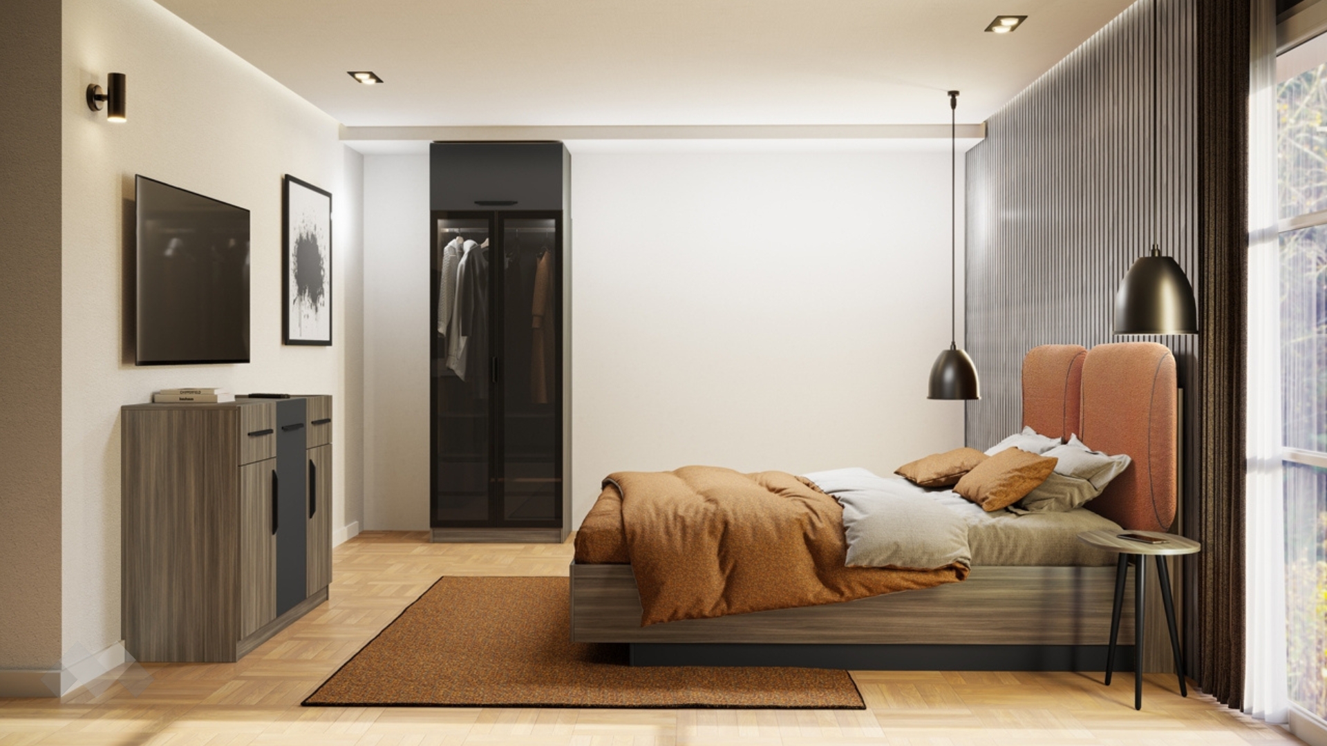 Преобрази спалнята си с модерния спален комплект Наоми – съвършено съчетание от комфорт, естетика и интелигентно разпределение. Той е създаден, за да ти осигури не само удобство по време на сън, но и идеална организация на вещите ти, така че всяка сутрин да започваш деня си спокойно и вдъхновено.