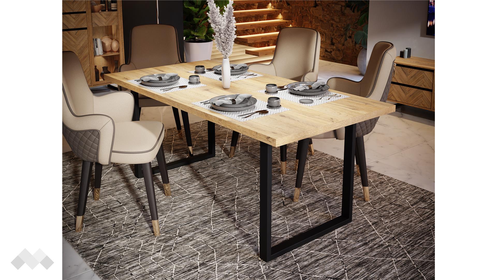 Открийте перфектната комбинация от стил и функционалност с нашата трапезна маса Никодис. Проектирана с черни метални крака, тази маса не само че осигурява изключителна стабилност, но и добавя модерен акцент към всяко помещение. Масата предлага достатъчно място за хранене с приятели и семейство. Идеална е както за ежедневна употреба, така и за специални поводи. Чистият й минималистичен дизайн я прави изключително адаптивна, съчетавайки се перфектно с различни стилове на интериор – от индустриален до скандинавски.