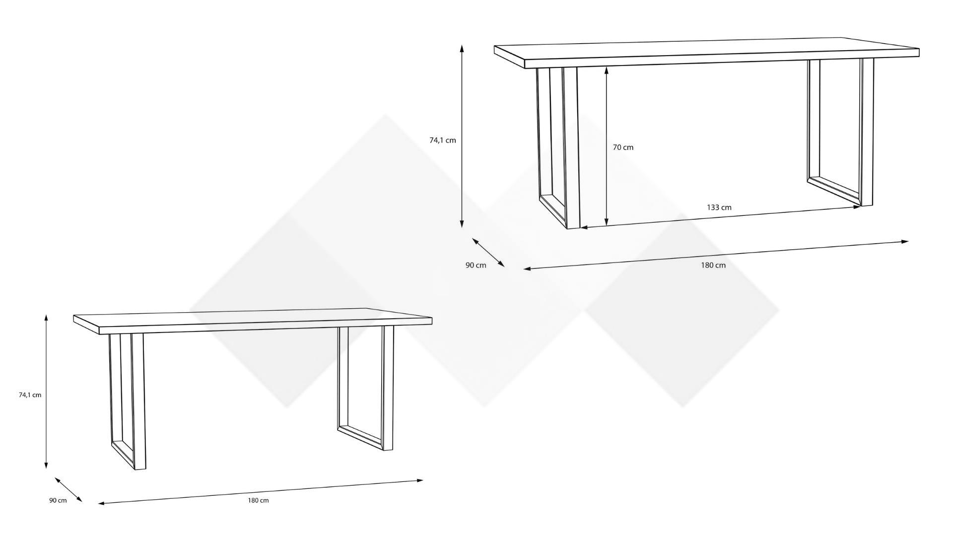 Д: 180 см Ш: 90 см В: 74,1 см