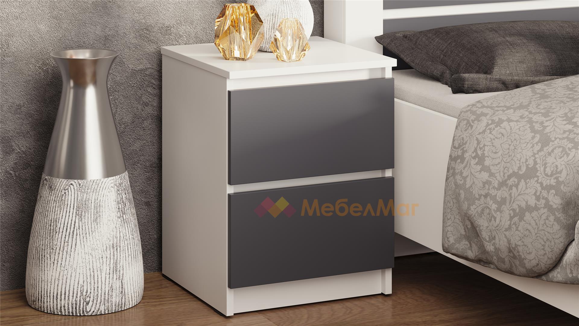 Нощното шкафче е практично и благодарение на оптималната му височина, то ще пасне на всяко легло. На твое разположение са две чекмеджета, които ще ти предоставят достатъчно място за съхранение на всички най-необходими вещи, за да са винаги на една ръка разстояние. Върху горния плот можеш да поставиш кокетна нощна лампа или стилна декорация. Още едно предимство, с което разполага са телескопичните водачи на чекмеджетата - те са по-здрави и издържливи във времето.