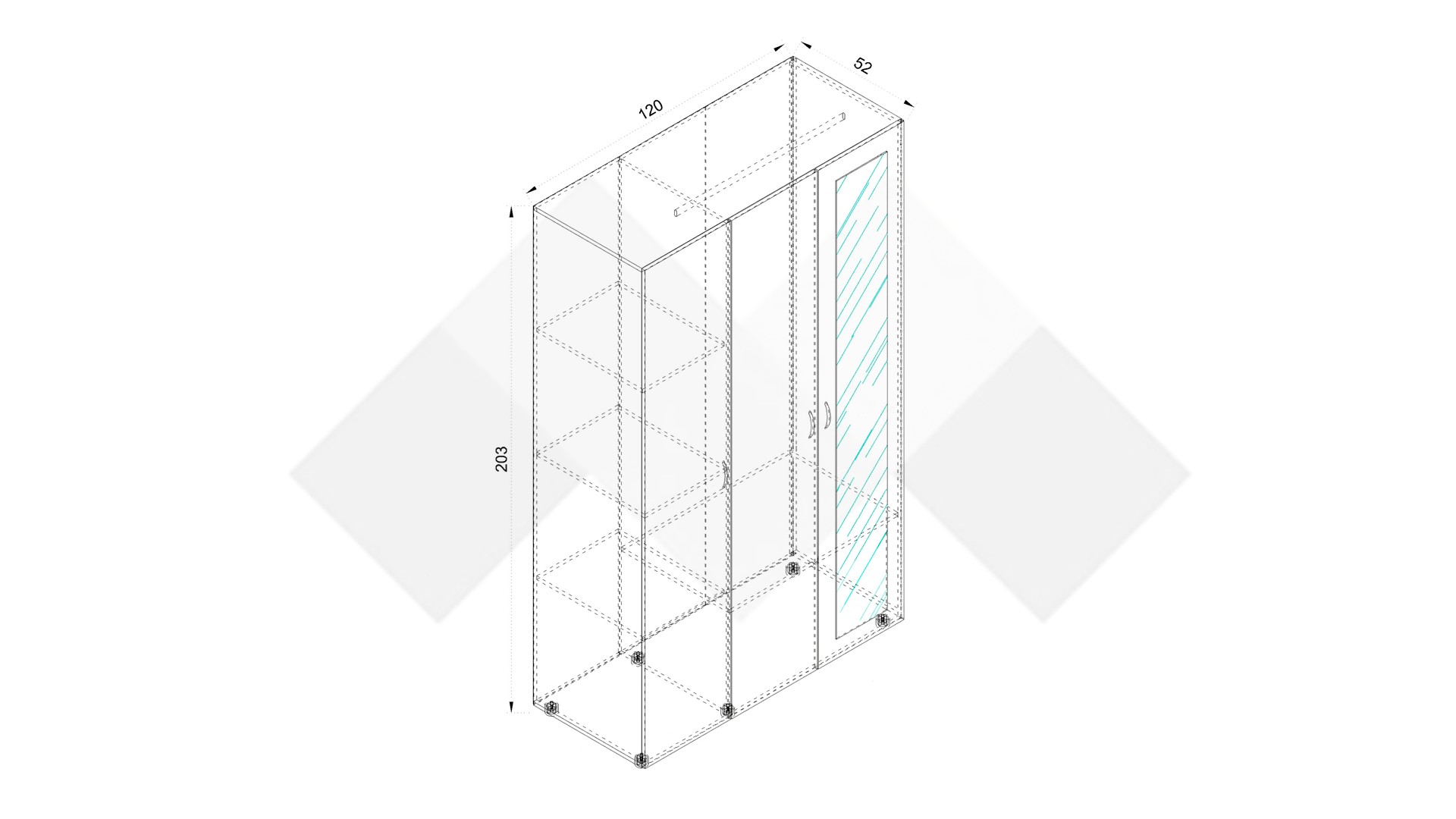 Д: 120 см Ш: 52 см В: 203 см