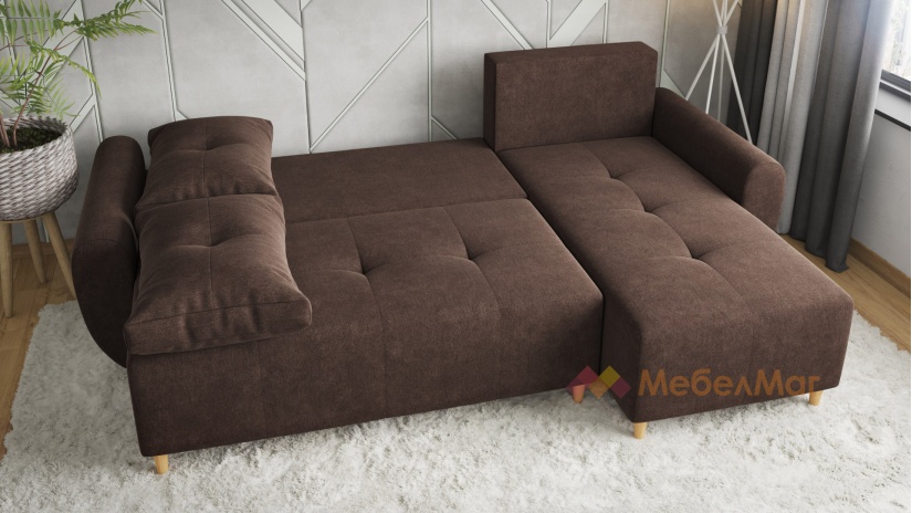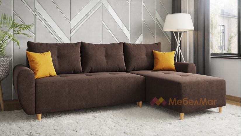 Ъглов диванПамплона Покеткафяв универсален ъгъл