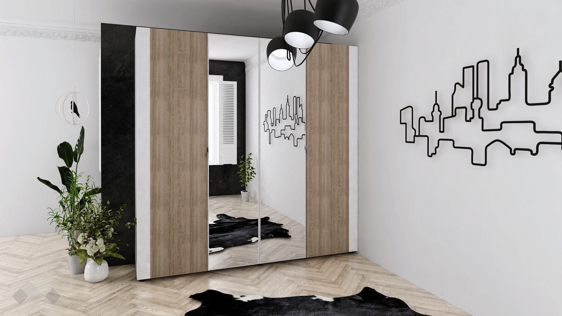 Ако търсиш идеалното решение за съхранение, което съчетава съвременен дизайн с висока функционалност, гардероб Париж е точно за теб. Със своето елегантно и практично разпределение този гардероб ще бъде перфектното допълнение към всяка спалня, предоставяйки не само достатъчно място за всичките ти дрехи, но и стилен акцент в интериора.