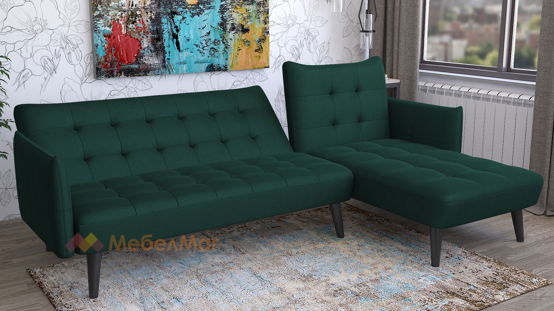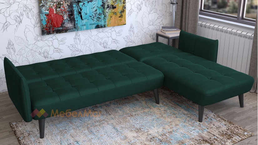 Разполага с два клик-клак механизма, един на седалната част и един на лежанката. Благодарение на тях диванът за миг се превръща в легло с размери 164/214 см.