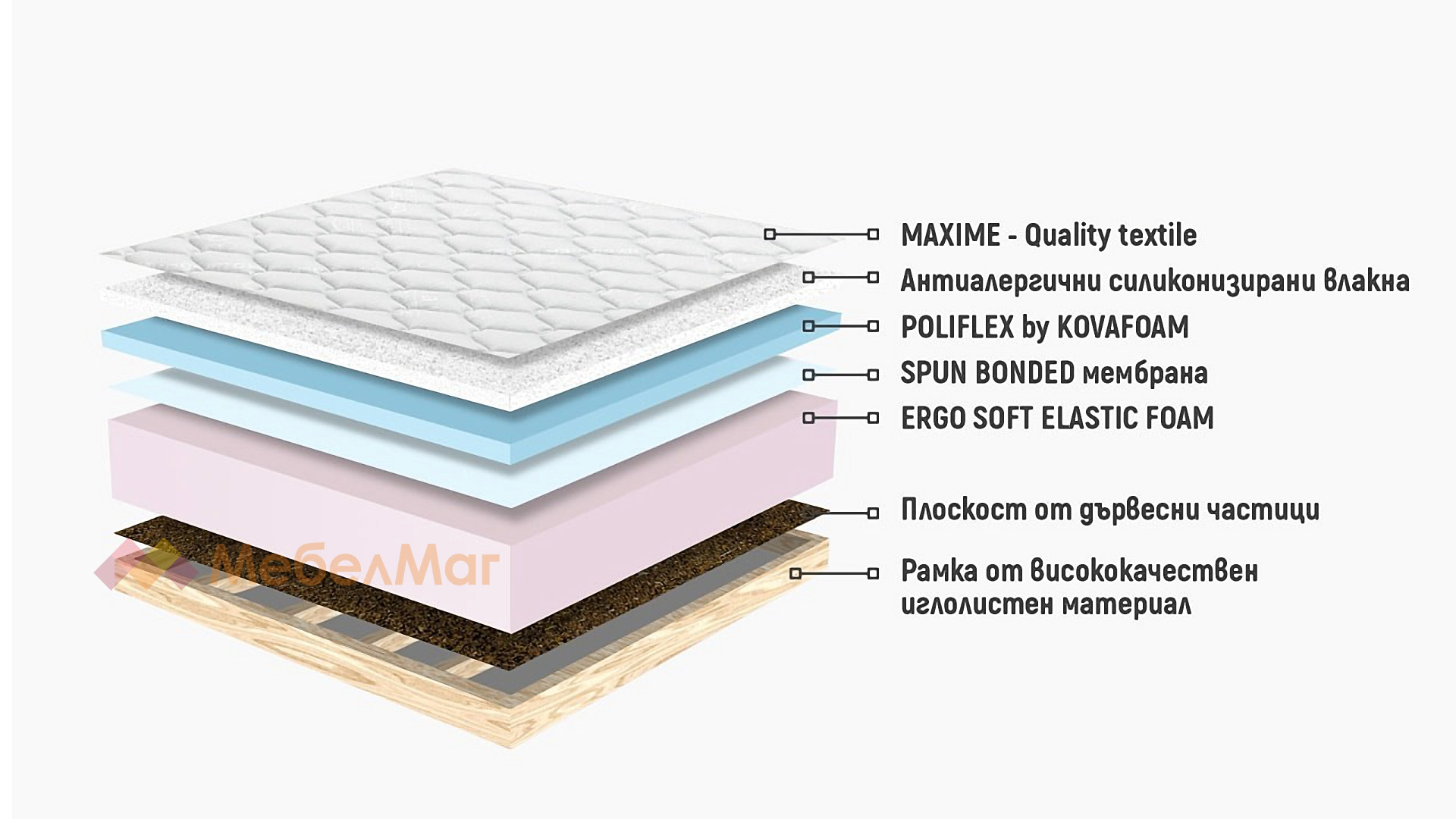 [li]Предимства – ортопедичен, дишащ матрак [/li]