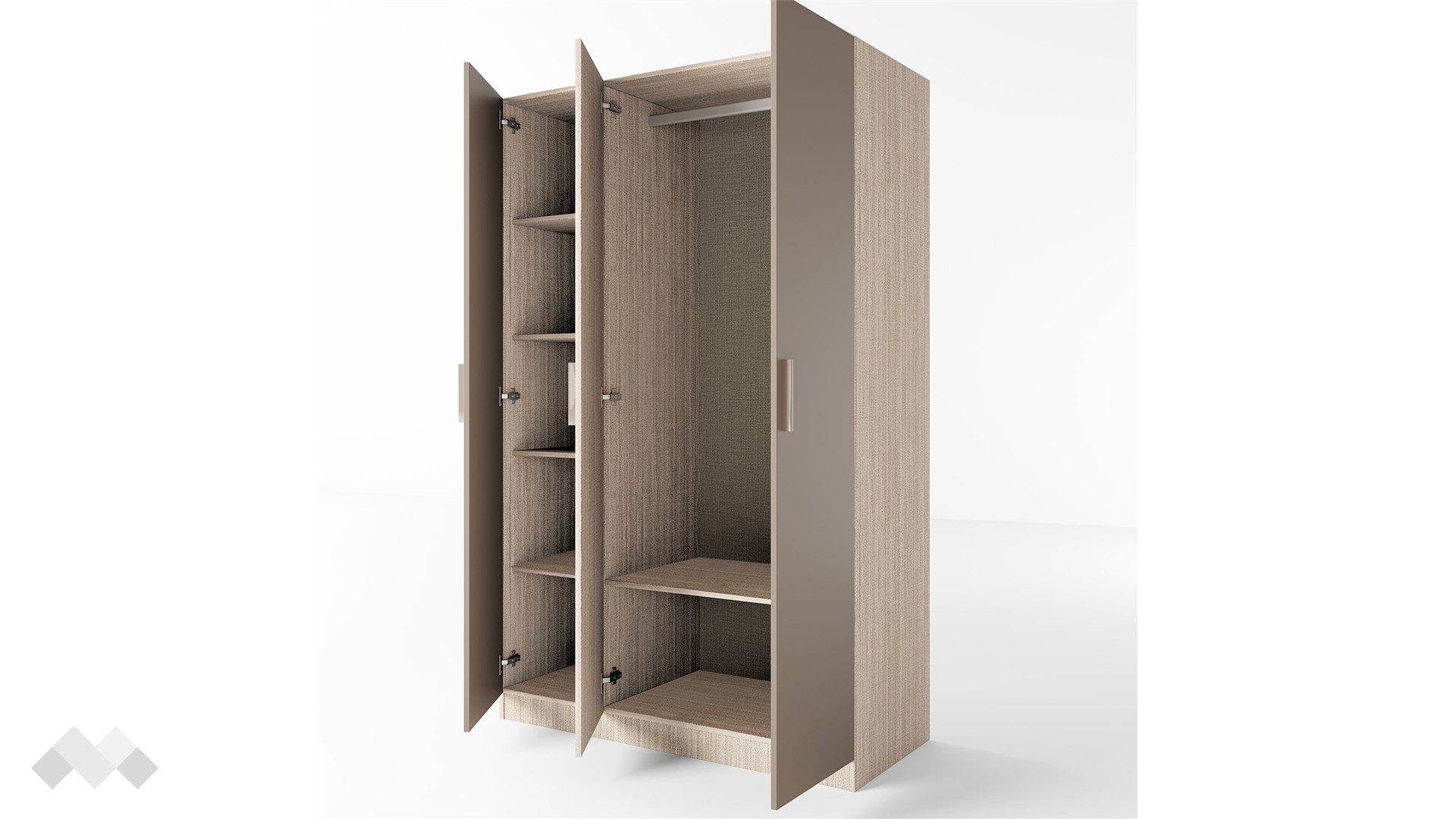 ⭐ Предимства: ✓ трикрилен ✓ 5 рафта ✓ лост за закачалки ✓ механизъм за плавно затваряне ✓ модерен декор ✓ практично разпределение ✓ качествена изработка ✓ 16 мм ПДЧ