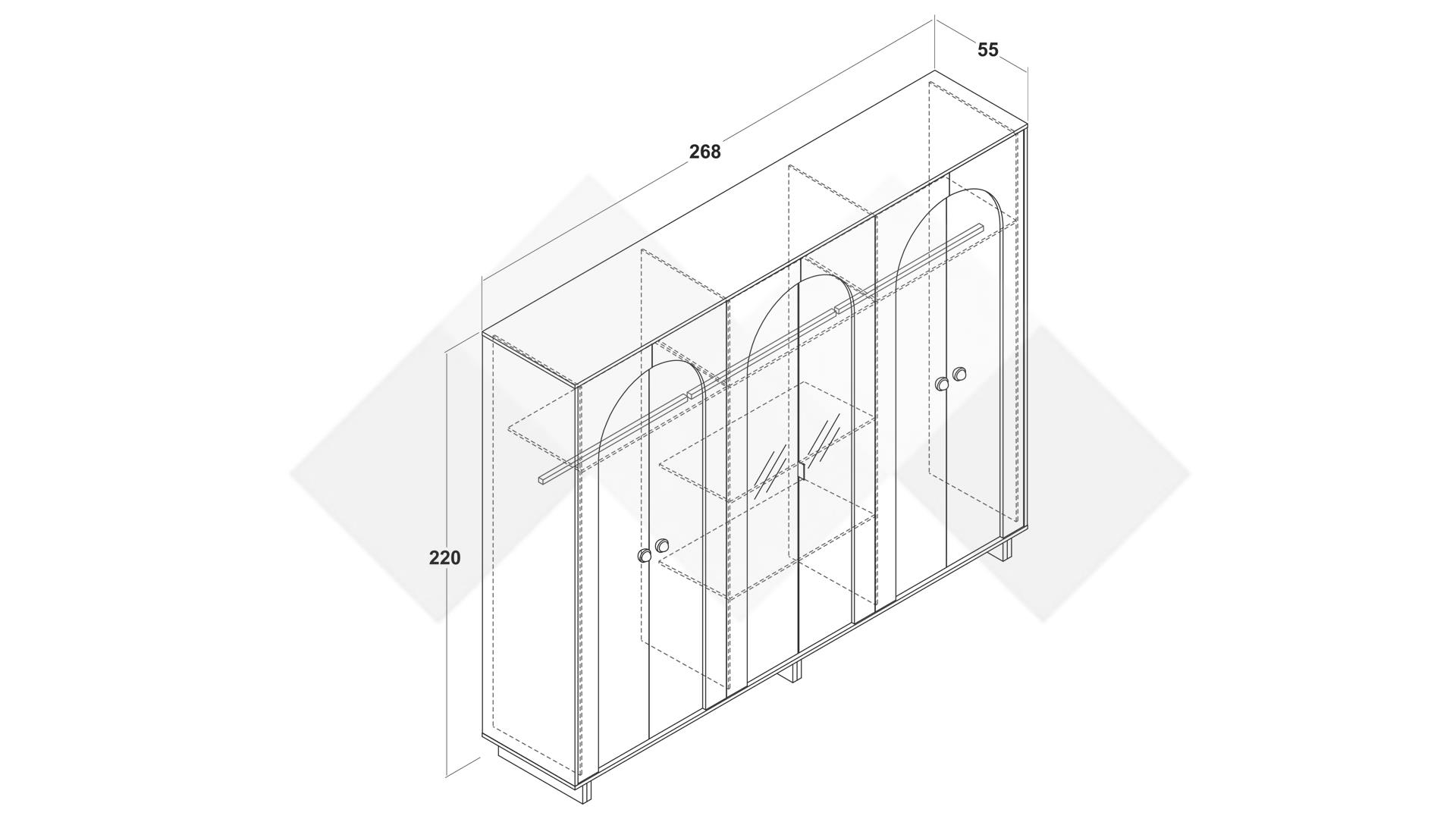 Д: 268 см Ш: 55 см В: 220 см