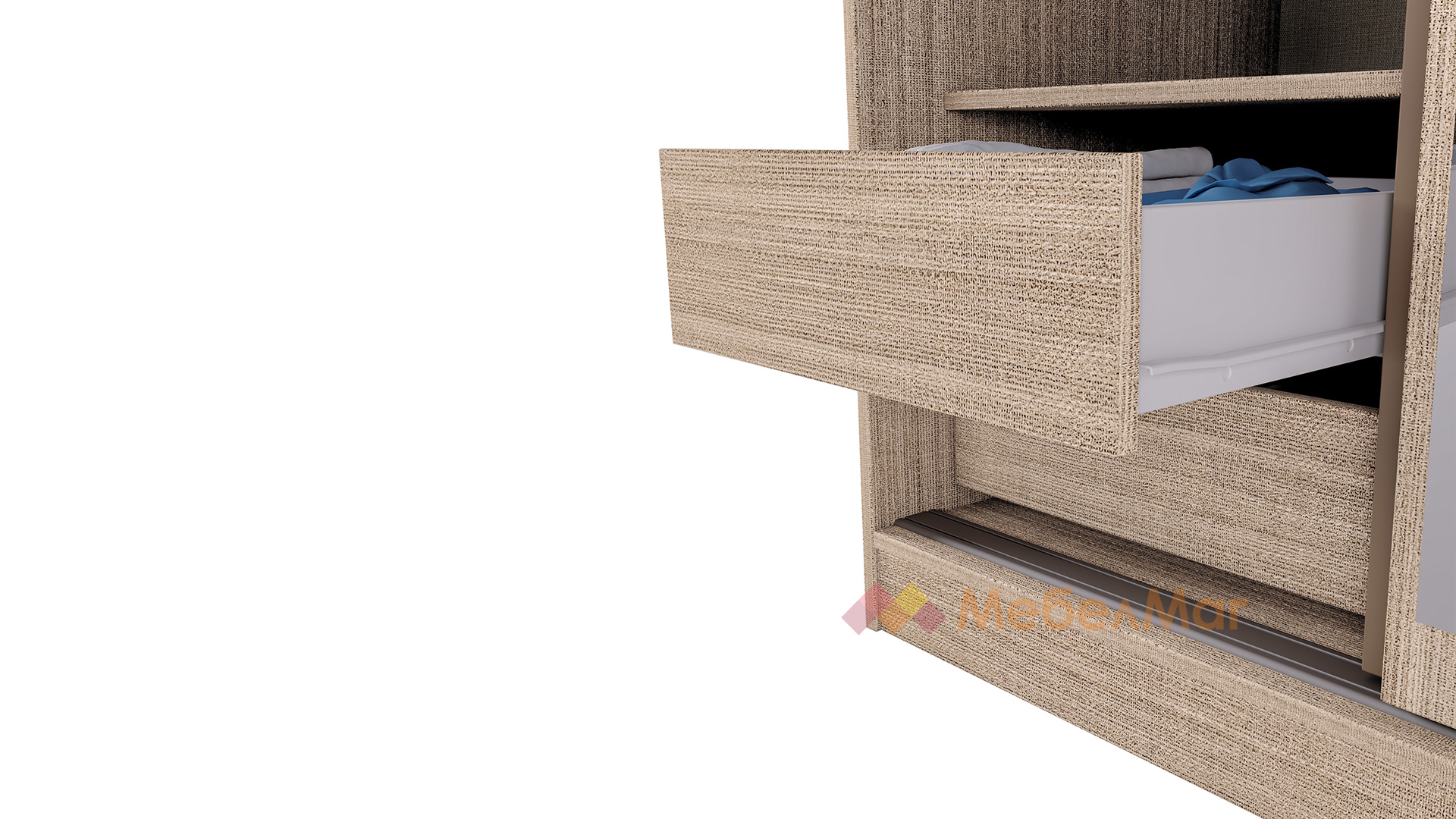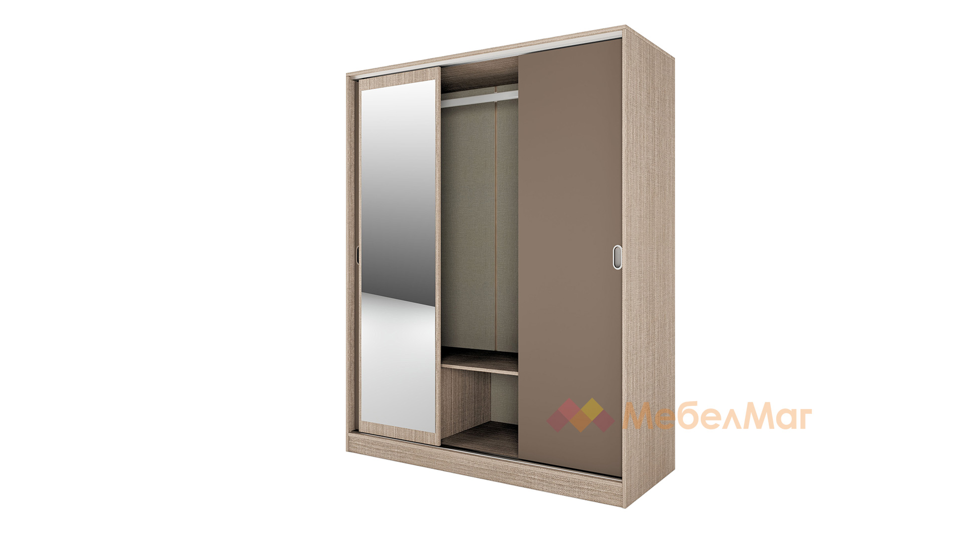 ✓ плъзгащи врати ✓ 2 чекмеджета ✓ 4 рафта ✓ лост за закачалки ✓ модерен декор ✓ практично разпределение ✓ качествена изработка
