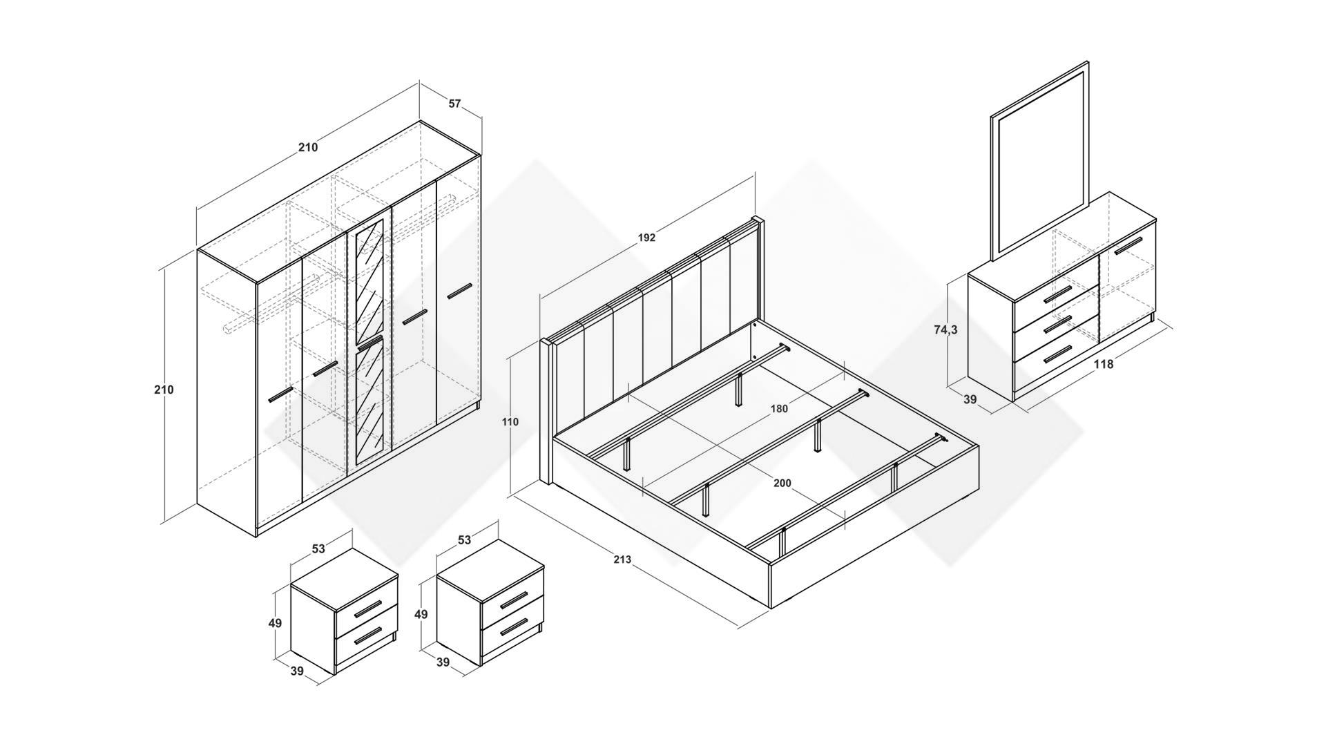 ⭐ Предимства: ✓ 18 мм ПДЧ ✓ спалня ✓ 2 нощни шкафчета ✓ петкрилен гардероб ✓ огледала ✓ скрин с огледало ✓ компактен и практичен ✓ елегантен дизайн ✓ модерен декор ✓ качествена изработка