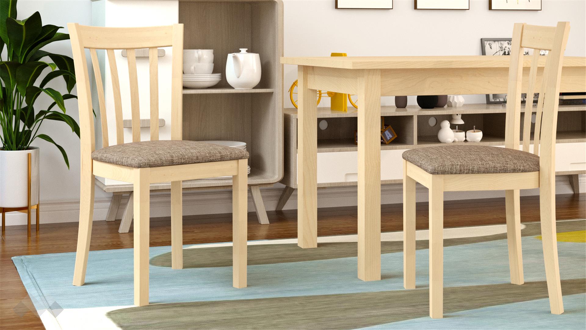 Столът е със здрава конструкция от естествена букова дървесина за устойчивост и стабилност, а лаковото покритие добавя елегантност. Седалката е проектирана с твърда основа, тапицирана с дунапрен за повече комфорт при седене и завършен със здрава текстилна дамаска, лесна за поддръжка.