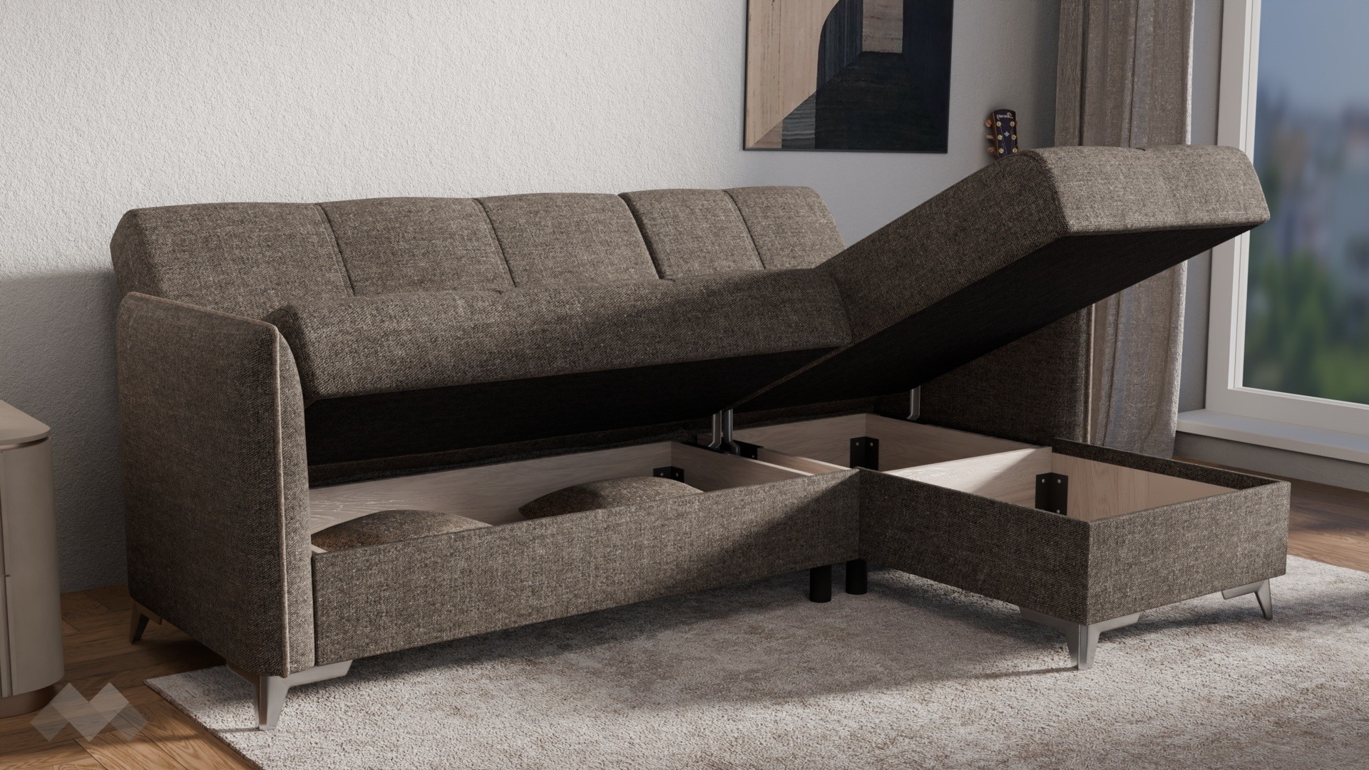 Ъгловият диван Сафо е създаден с мисъл за динамичното ежедневие – лесен за използване, удобен и функционален. Той предлага всичко необходимо за комфортна почивка, без да заема излишно пространство.