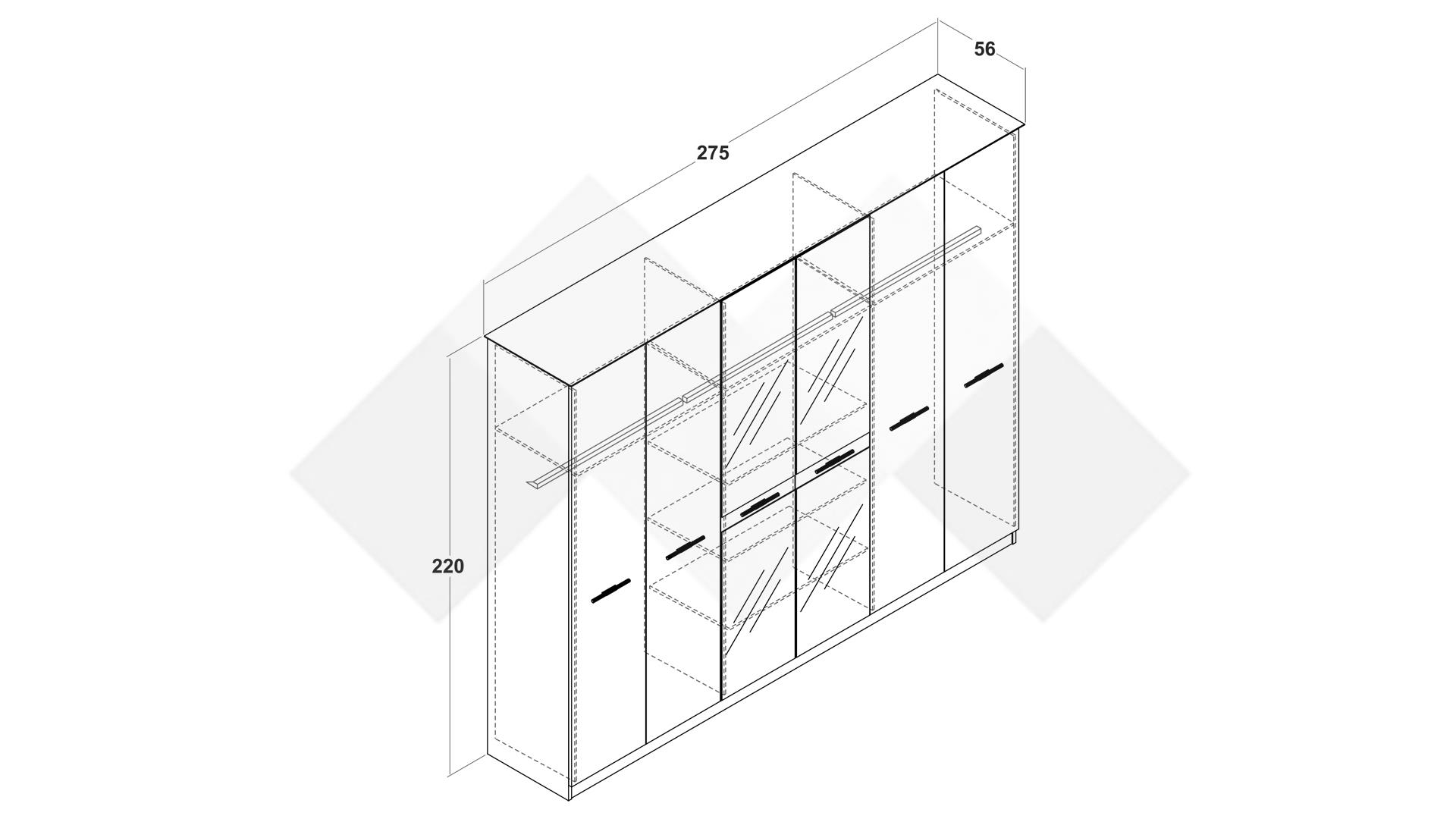 ✓ 18 мм ПДЧ ✓ шесткрилен ✓ 2 лоста за закачалки ✓ плавно затваряне на вратите ✓ 6 рафта ✓ модерен декор ✓ качествена изработка