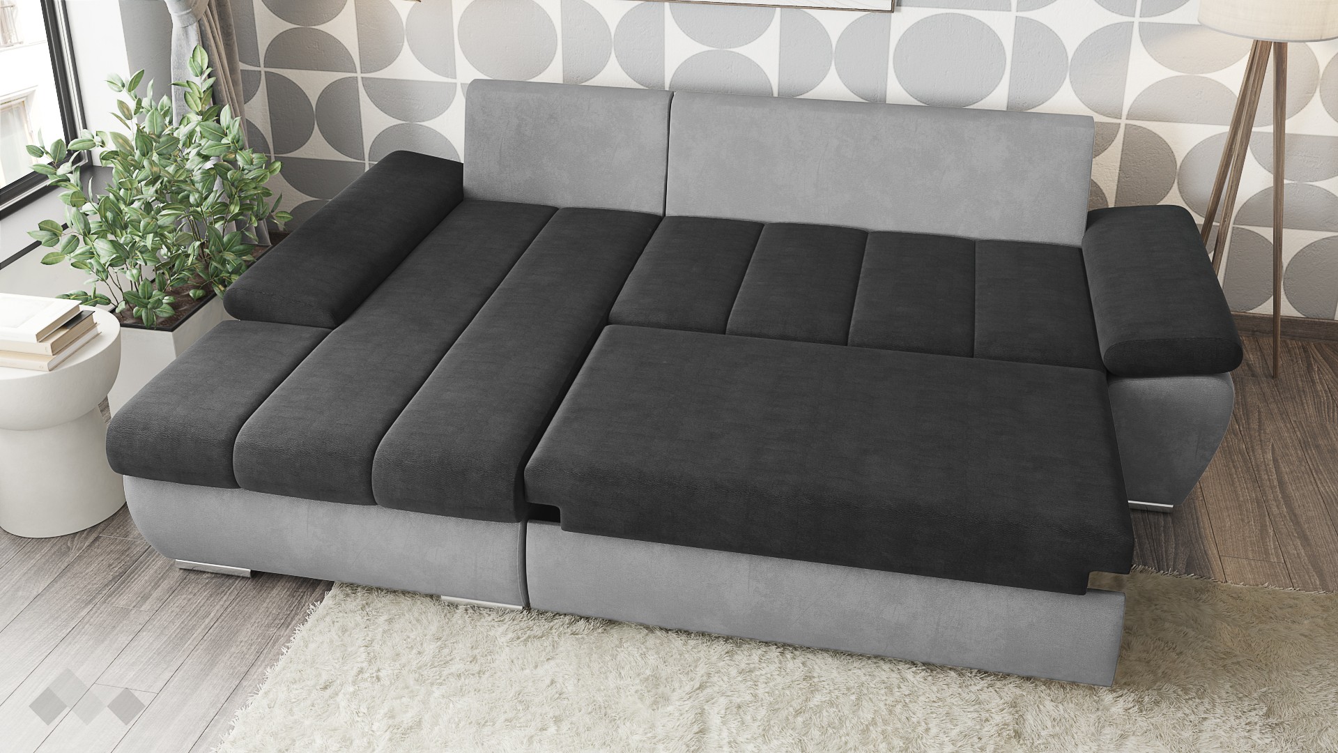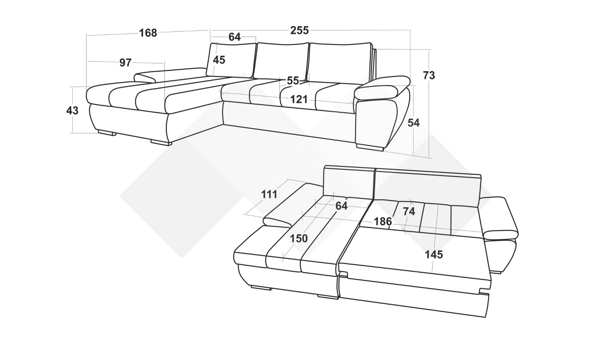 Функцията сън, която прави този диван идеален за почивка, може да бъде лесно активирана чрез подматрачния механизъм, превръщайки дивана в удобно легло с размери 145/186 см.