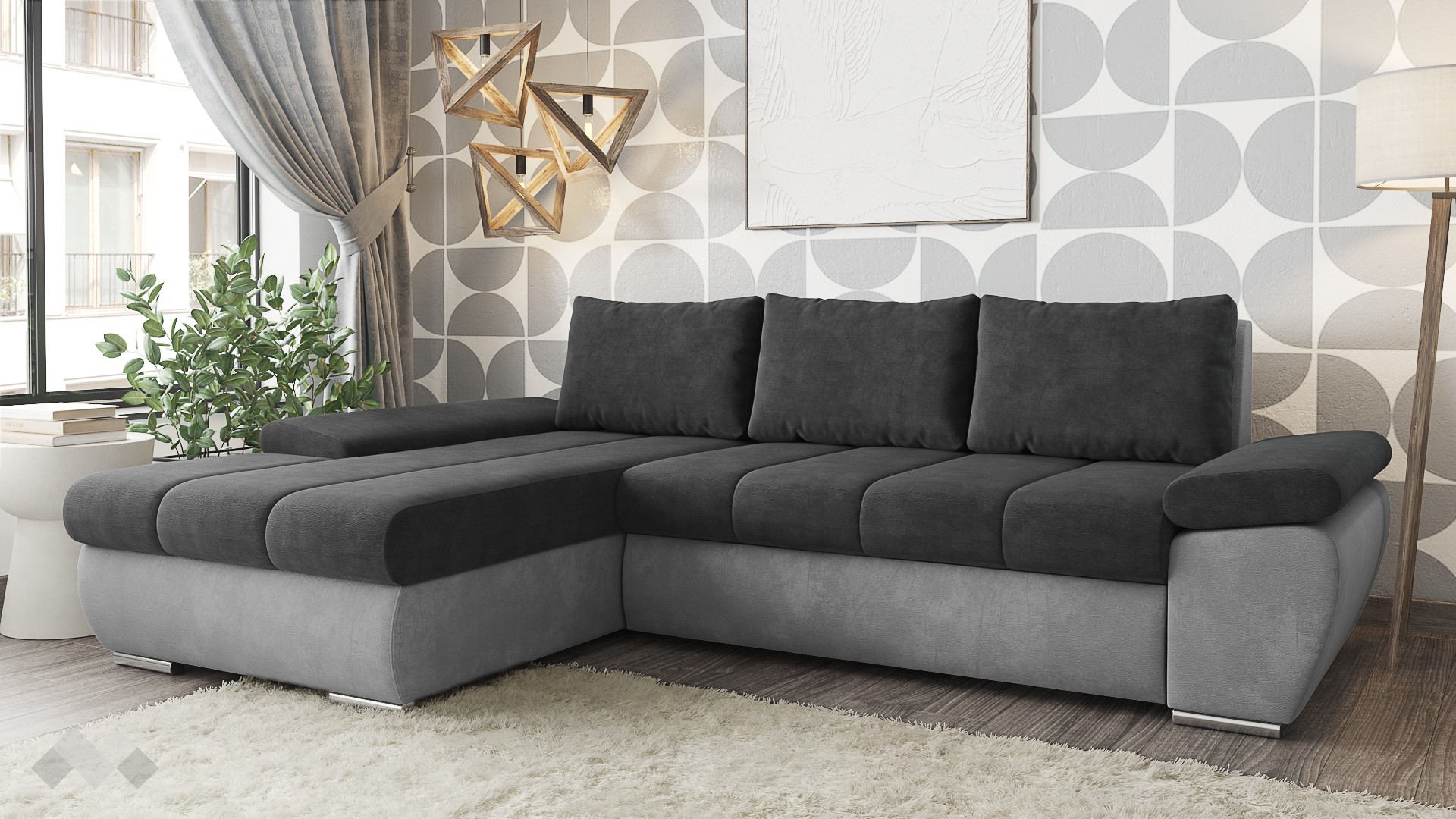 Ъглов диванСавонаграфит със сиво с посока: ляв ъгъл