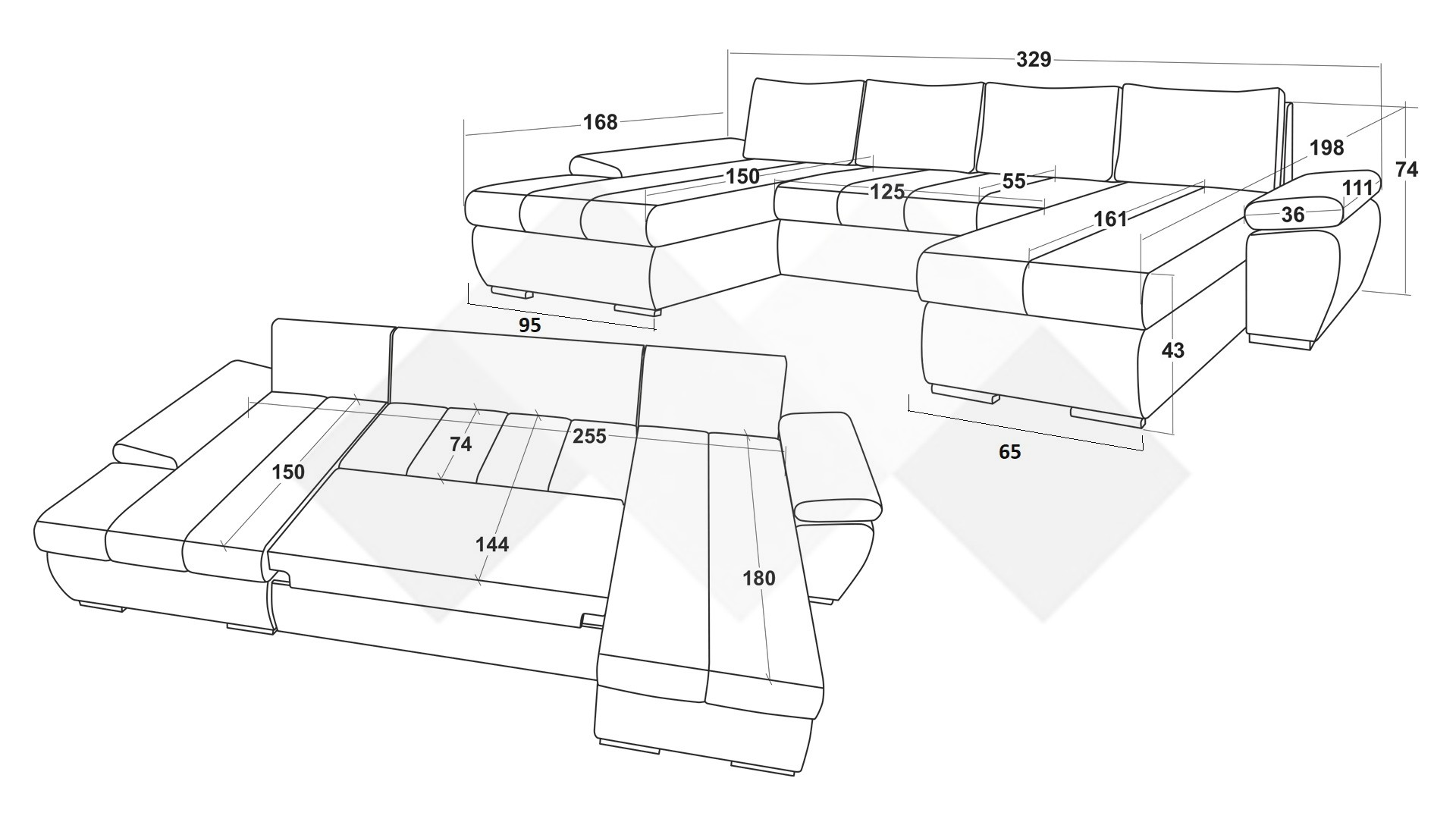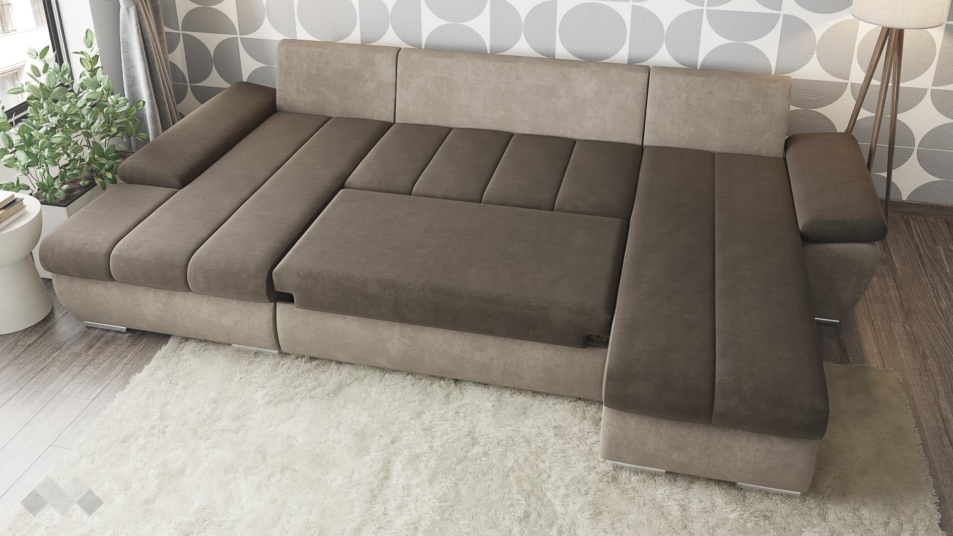 Функцията сън, активираща се чрез подматрачен механизъм, осигурява практично място за отдих с площ приблизително 144/255 см – перфектна за гости или ежедневна употреба. Диванът разполага с подлакътници от двете страни, с лека извивка за оптимална опора, както и с големи облегални възглавници, чийто калъфи се свалят, за по-лесна поддръжка, гарантиращи мекота и релакс.