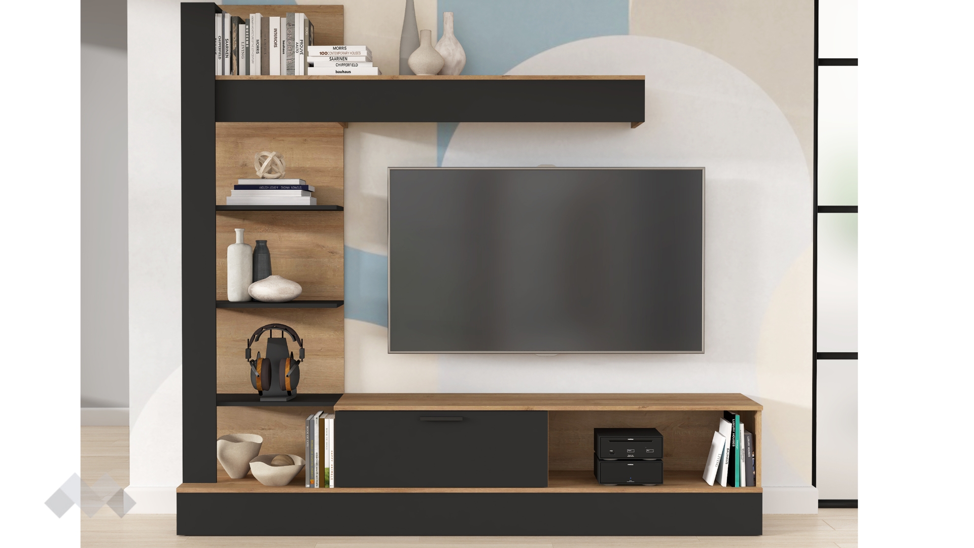 Пространството за телевизор е достатъчно голямо, за да побере твоя телевизор, като същевременно осигурява място за разполагане на техника или аксесоари.