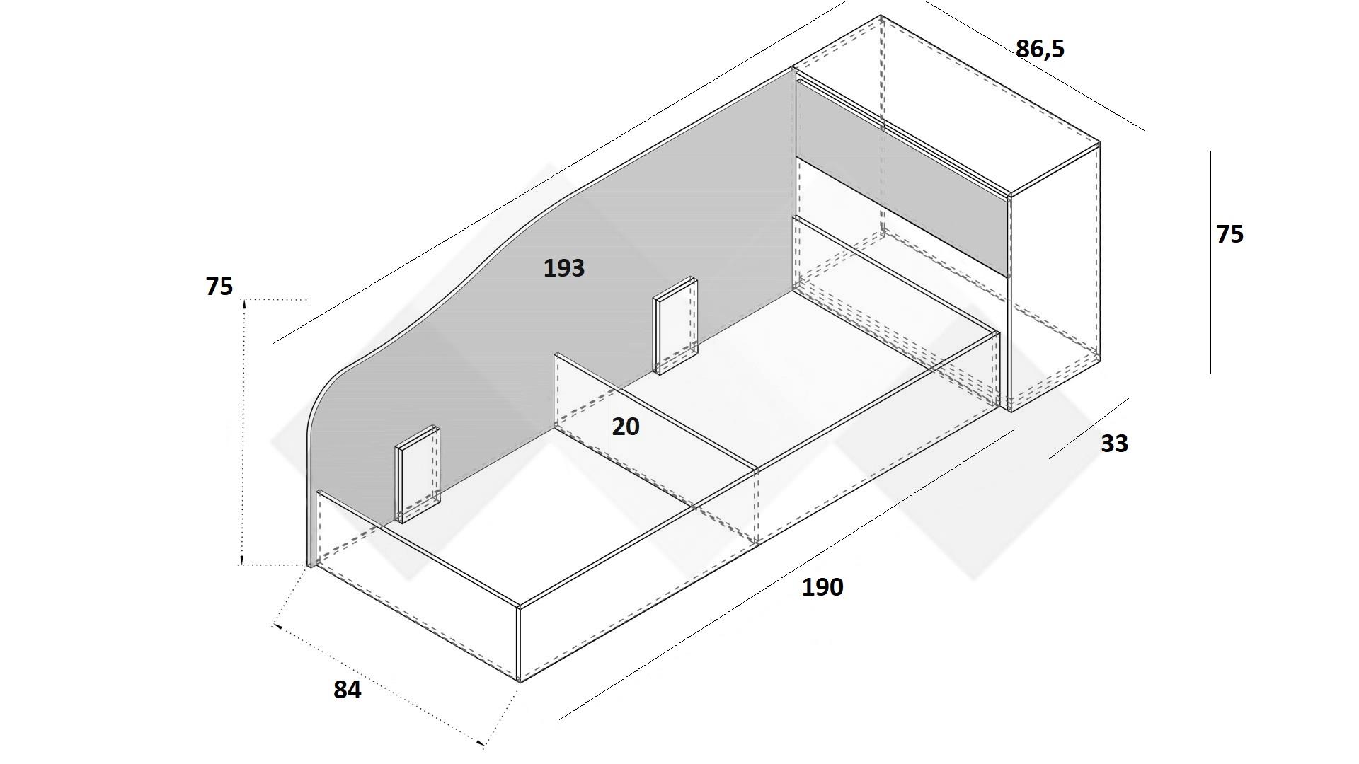 Легло: Д: 84 см Ш: 190 см В: 75 см